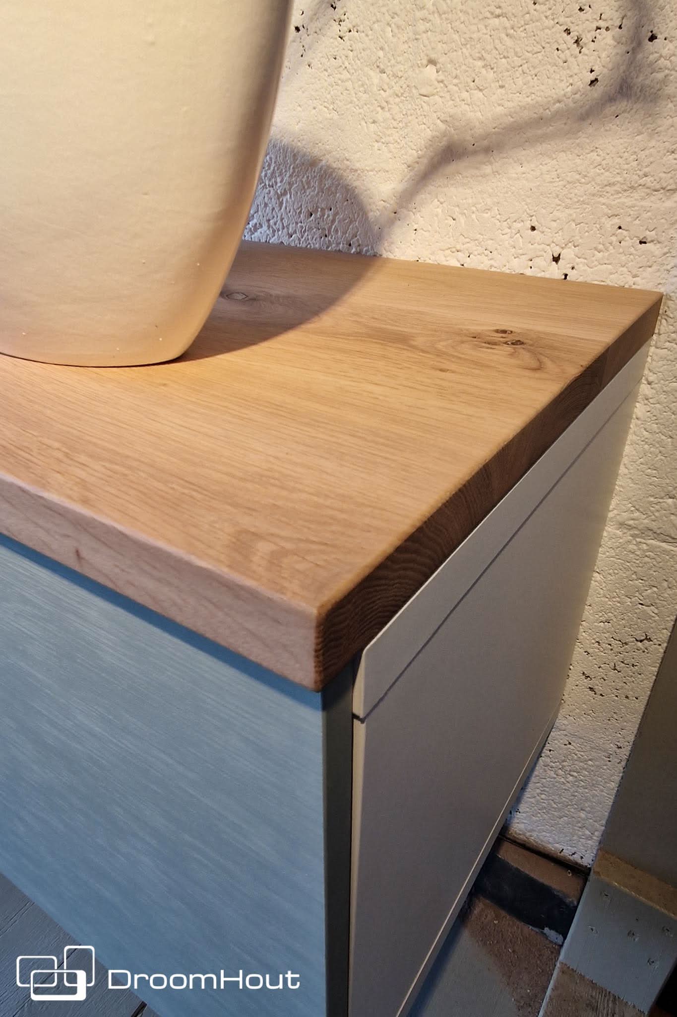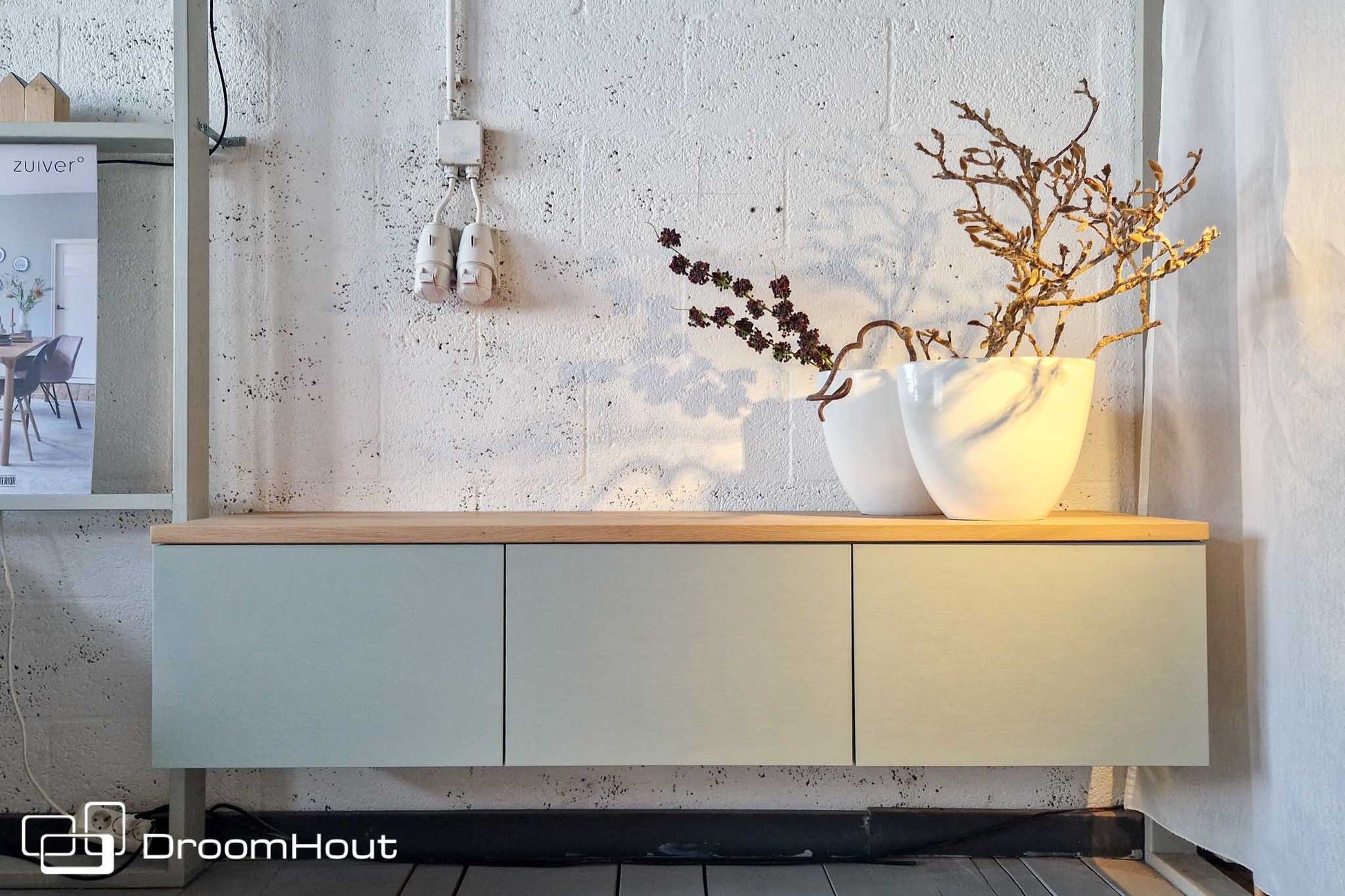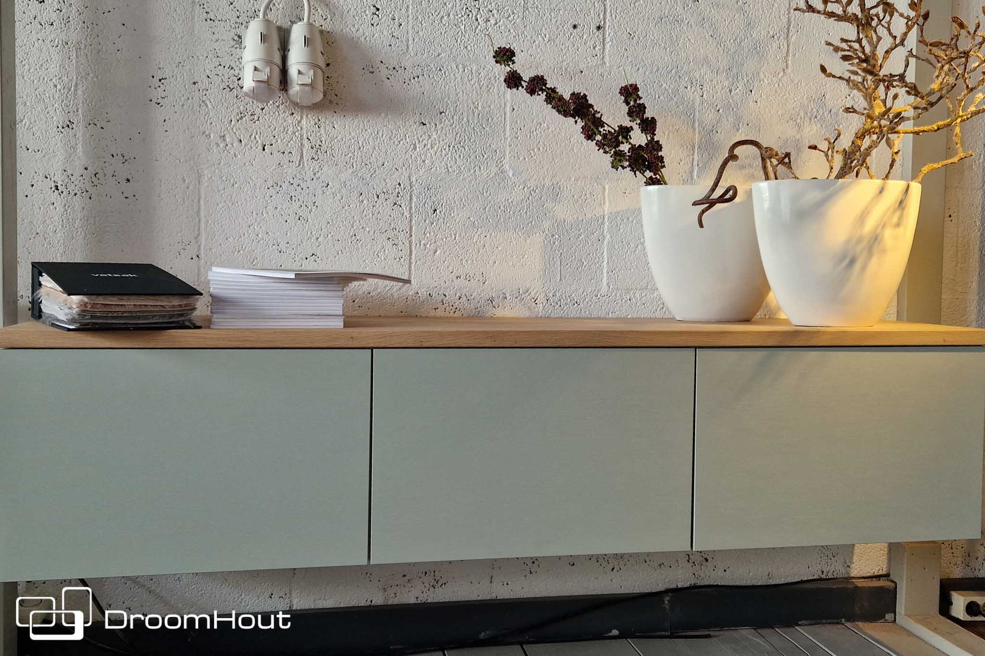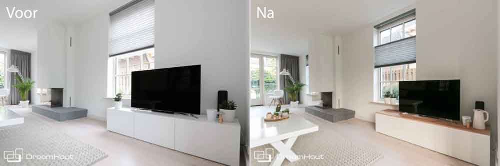 Op deze manier ga je een super mooi TV-meubel in je woonkamer krijgen. Het blanke eikenhout matcht met heel veel kleuren en past sowieso heel goed bij alle kleuren waarin de BESTÅ zelf te krijgen is. Dit TV-meubel geeft een frisse natuurlijke component in je interieur. En mocht je ook nog bijvoorbeeld een eettafel van DroomHout in huis hebben of halen dan geeft dit een prachtige balans omdat het hout dan mooi bij elkaar past. Haal nu snel de kastjes bij IKEA en bestel je massief houten blad bij DroomHout. Bij zelf ophalen in Utrecht is je blad nog voordeliger.
