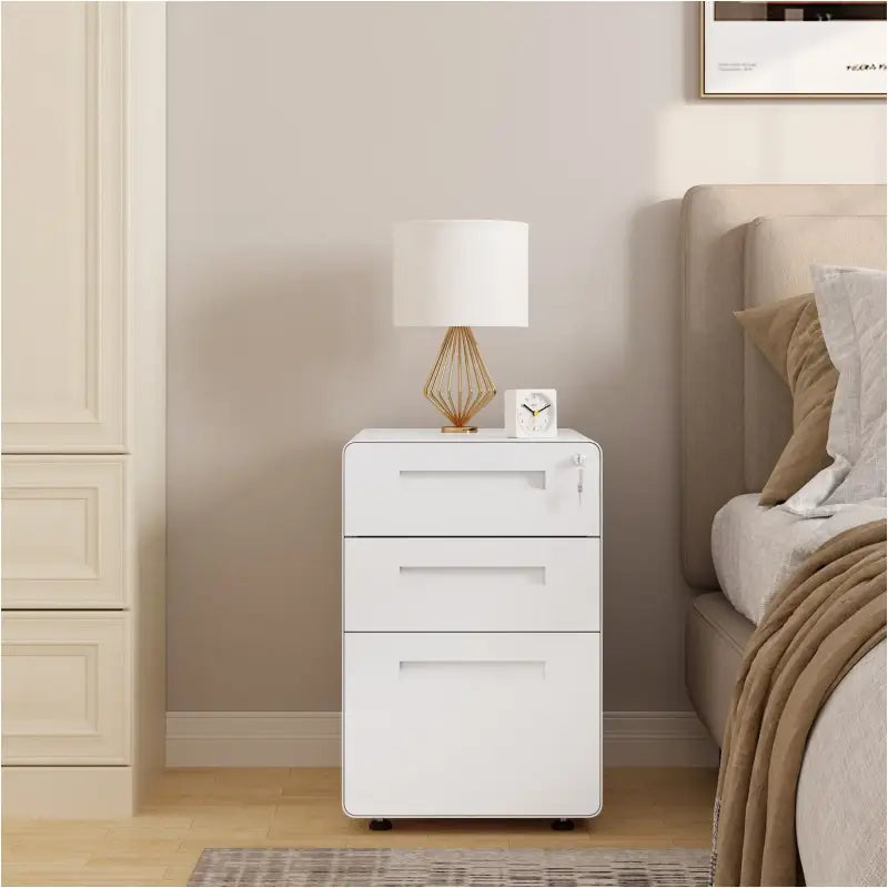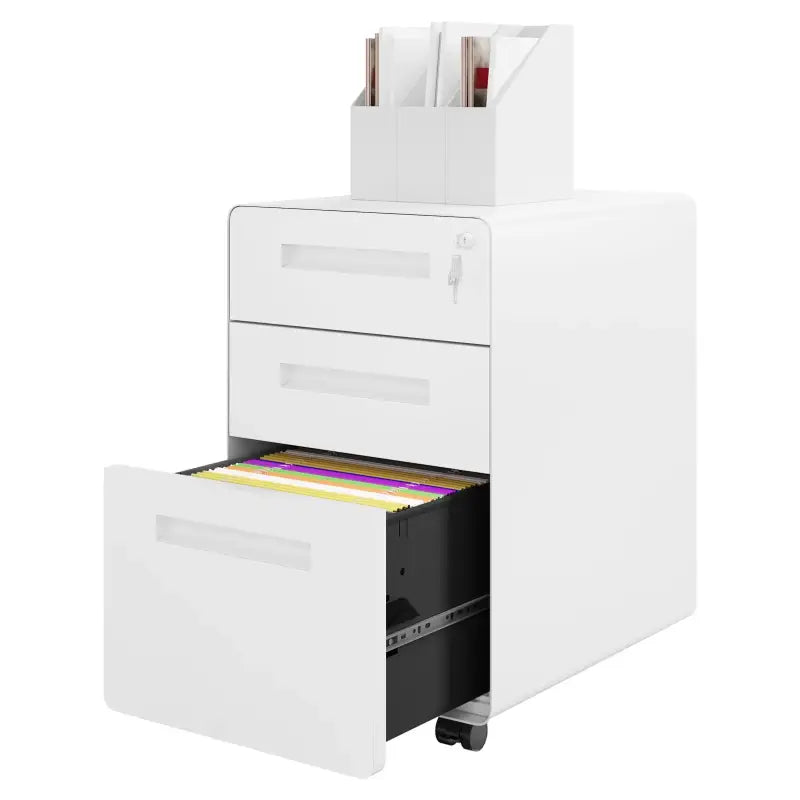 BukkitBow - Archiefkast op Wielen met Slot - Met Ronde Randen - Opbergruimte met 3 Lades voor Dossierdocumenten - Met Vergrendelingsmechanisme
