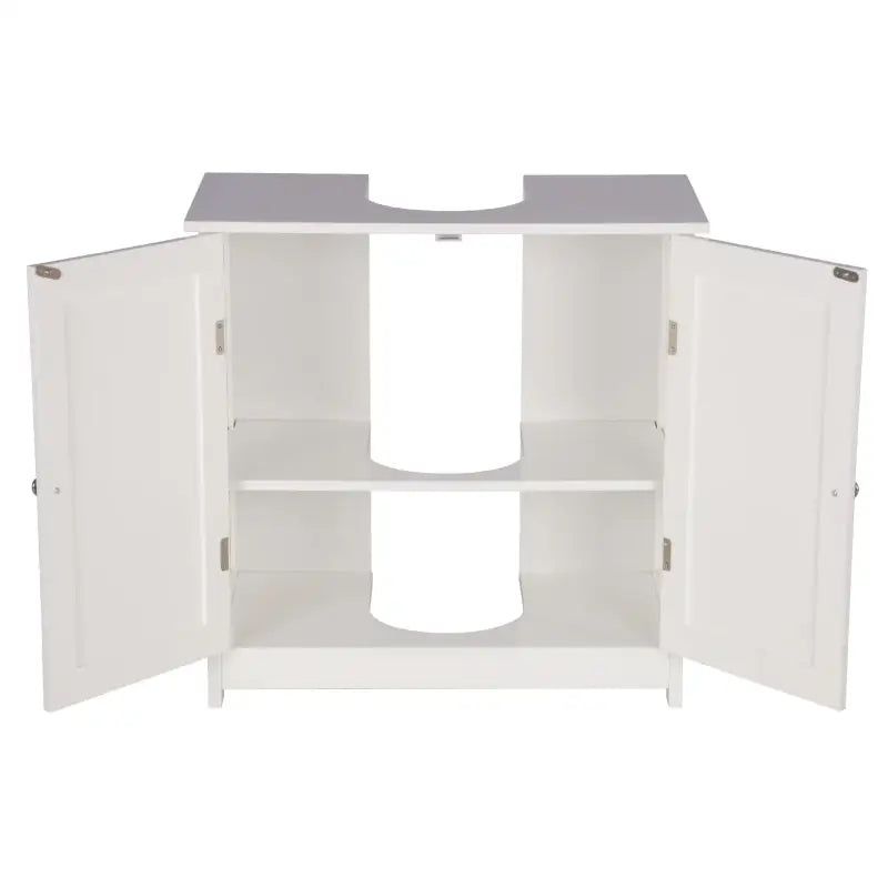 Gemaakt van hoogwaardig MDF (klasse E1), is dit badkamermeubel duurzaam en bestand tegen vocht en water. Het gladde oppervlak is gemakkelijk schoon te maken en te onderhouden, waardoor het perfect is voor gebruik in de badkamer. Met twee ruime compartimenten biedt dit meubel voldoende ruimte voor het opbergen van toiletartikelen, handdoeken en andere kleine items, waardoor uw badkamer opgeruimd en georganiseerd blijft.