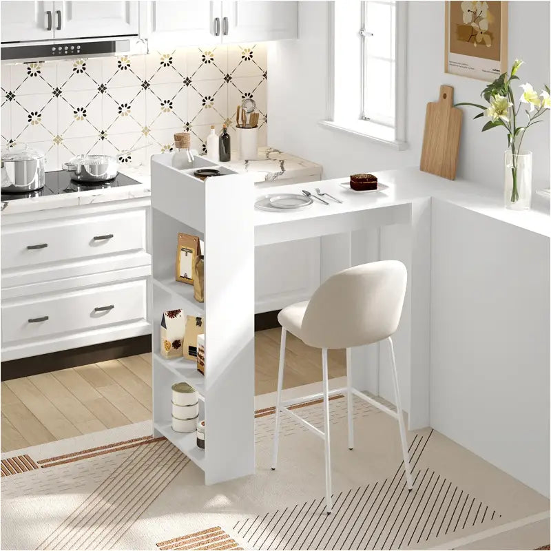 De BukkitBow Bartafel met Opslag biedt een perfecte combinatie van stijl en functionaliteit, waardoor het een ideale toevoeging is aan elk modern interieur. Met afmetingen van 110 x 120 x 51 cm biedt deze bartafel voldoende ruimte om gezellig samen te komen met familie of vrienden. Het tafelblad is bestand tegen slijtage en gemakkelijk schoon te maken, ideaal voor dagelijks gebruik. Verkrijgbaar in een klassiek zwart-witte kleurstelling, past deze tafel moeiteloos in diverse interieur stijlen. Of u nu een drankje serveert of samenkomt voor een maaltijd, deze bartafel voldoet aan al uw behoeften.