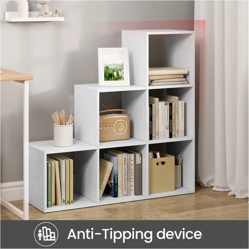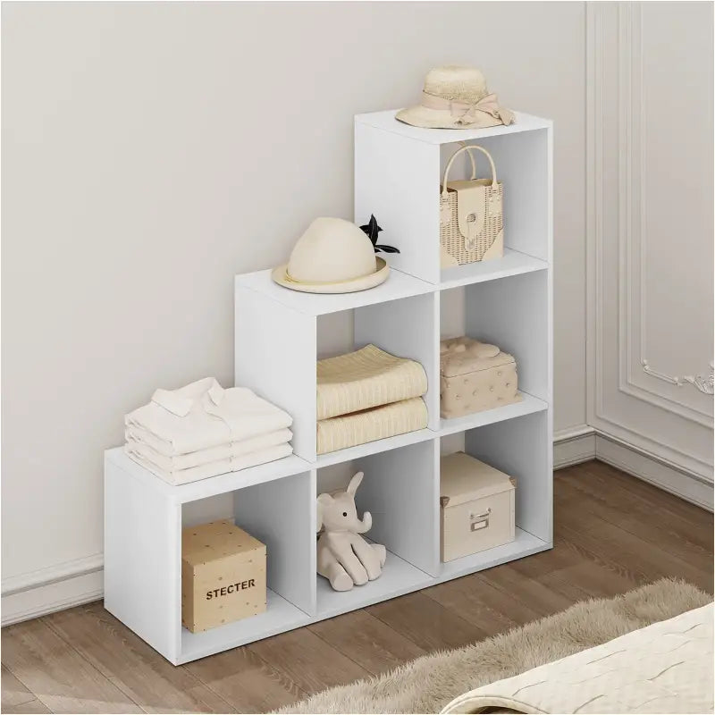 BukkitBow - Boekenkast met 3 Niveaus - 6 Vakken Trapkast - Kubusplanken - Archiefkast - Wit