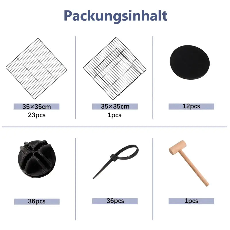Deze knaagdierenren is geschikt voor diverse kleine huisdieren zoals puppy's, kittens, konijnen, hamsters, cavia's of chinchilla's, en biedt een ideale speelomgeving. Met de meegeleverde onderdelen en een hamer is de montage eenvoudig en snel. Let op: alle producten worden met de hand gemeten, waardoor er mogelijk een dimensionele afwijking is. Kleuren kunnen ook verschillen afhankelijk van monitorinstellingen, en decoratieve items zijn niet inbegrepen in de levering.