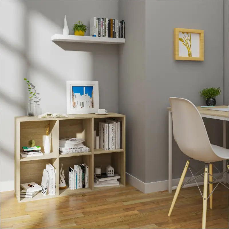 Met zijn compacte ontwerp past deze boekenkast perfect in kleine ruimtes, terwijl hij toch veel opslagruimte biedt. De afmetingen van 60x29.5x89 cm (Bxdxh) maken het ideaal voor slaapkamers, woonkamers, studeerkamers, en zelfs kinderkamers. De 6 opslagkubussen bieden u de mogelijkheid om uw spullen georganiseerd en overzichtelijk te houden, zonder rommel.