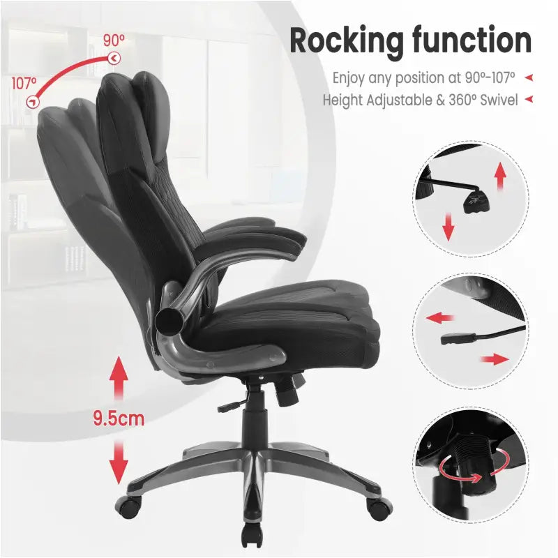 Gemaakt van hoogwaardige materialen, zoals PU-leer en ademende mesh-stof, is deze bureaustoel niet alleen comfortabel, maar ook duurzaam en gemakkelijk te onderhouden. Met een gewichtscapaciteit van 150 kg, een brede vijfsterrenvoet en soepel rollende wieltjes, biedt deze stoel stabiliteit, veiligheid en flexibiliteit. De eenvoudige montage wordt verzekerd door de gedetailleerde instructies en alle benodigde accessoires die bij de stoel worden geleverd.