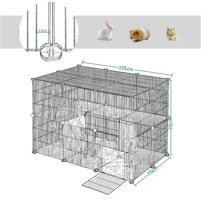 Deze knaagdieren ren met trapjes stimuleert de beweging van jouw huisdieren en biedt extra ruimte voor kleine dieren om energie op te doen. Met een draadafstand van 1,5 cm is deze ren geschikt voor kleine huisdieren zoals cavia's, hamsters, konijnen, egels, kittens, en zelfs puppy's en kittens om vrij rond te rennen en te spelen.