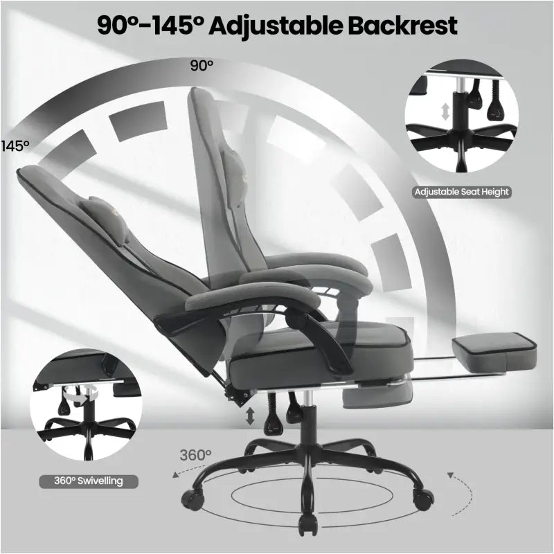 BukkitBow Gaming Stoel met Verstelbare Rugleuning en Voetsteun - Ongeëvenaard Comfort en Ondersteuning