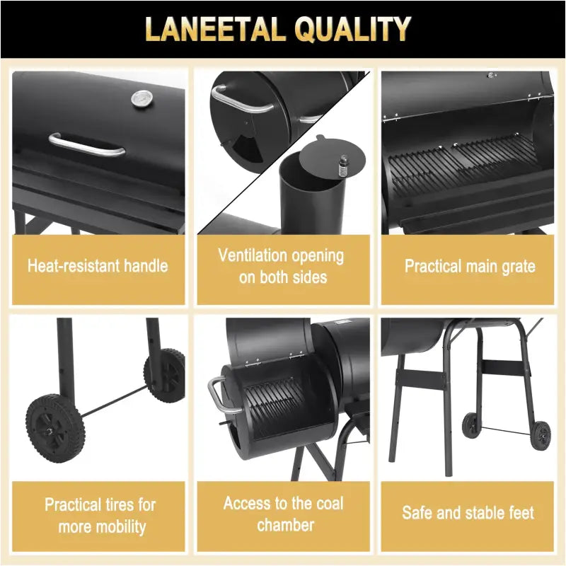 De BukkitBow Houtskoolbarbecue is ontworpen met mobiliteit en gebruiksgemak in gedachten. Dankzij de praktische wielen en het stevige handvat verplaats je de barbecue moeiteloos naar elke gewenste plek in je tuin of op je terras. Het slimme ontwerp met een extra rooster in de vuurhaard zorgt ervoor dat je al je BBQ-accessoires en gereedschap altijd binnen handbereik hebt. Dit maakt het grillen niet alleen makkelijker, maar ook efficiënter. De tweeledige houtskoolbarbecue bestaat uit een ruime kookkamer en een robuuste verbrandingskamer aan de zijkant, waardoor je kunt grillen, roken en extra smaak aan je gerechten kunt toevoegen.
