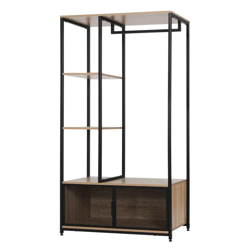 BukkitBow - Industriële Kapstok met Opbergvakken - Vintage Kledingrek met Planken en Deuren - Eenvoudige Montage - 90x40x167CM