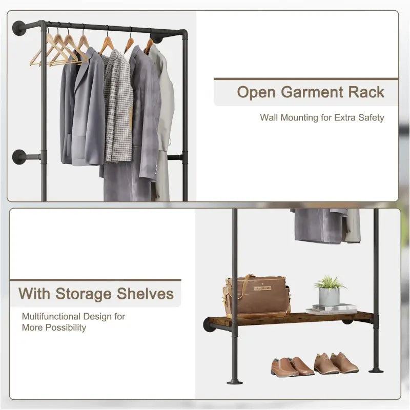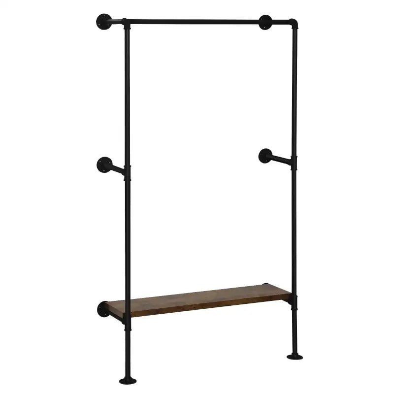 Deze metalen kapstok is vervaardigd uit stevige stalen buizen (diameter: 30 mm) die zijn geschilderd in mat zwart, wat zorgt voor duurzaamheid en roestbestendigheid. De MDF-plank van E1-kwaliteit is krasbestendig en eenvoudig te reinigen, terwijl de afgeronde hoeken en randen zorgen voor veilig gebruik. Dankzij het slimme partitionele ontwerp biedt de kledingrail met plank extra opbergruimte voor kleding, met een handige afstand van 30 cm tussen de plank en de grond voor het opbergen van schoenen.
