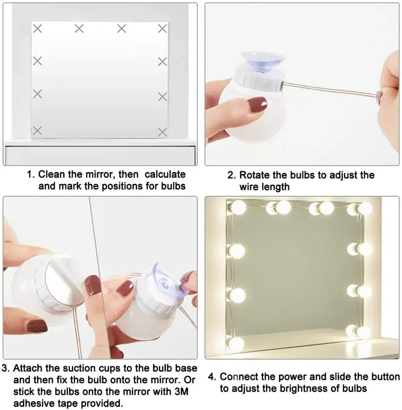 De kaptafel van BukkitBow is ontworpen met 12 LED-lampen die zorgen voor natuurlijk zacht wit licht, waardoor je huidskleur nauwkeurig wordt verlicht voor een helder en aangenaam zicht. Dit maakt het aanbrengen van make-up en het klaarmaken gemakkelijker en comfortabeler.