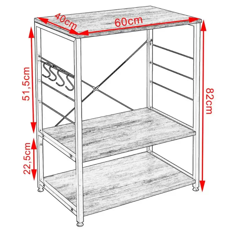 BukkitBow - Keukenkastje / Bijzettafeltje - Magnetronkast - Inclusief Rek voor Kopjes en Haken voor Keukengerei - 40X60X82CM