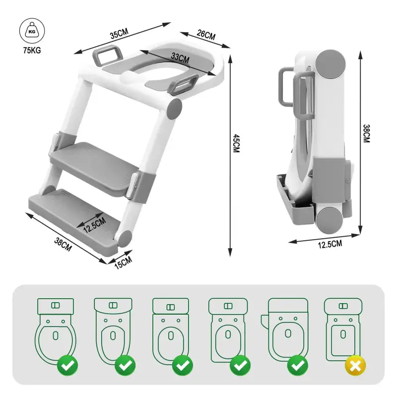 Met zijn non-assemblage en opvouwbare ontwerp is dit kindertoilet met trap eenvoudig uit te klappen voor gebruik. Wanneer het niet wordt gebruikt, kan het worden ingeklapt en opgeborgen tot een klein formaat, waardoor het ideaal is voor opslag thuis of gemakkelijk mee te nemen tijdens uitstapjes of op reis.