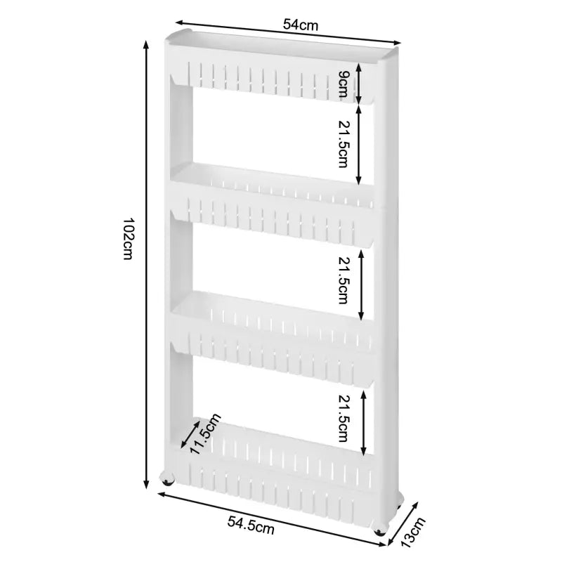Dankzij de soepel glijdende wielen is deze wagen gemakkelijk te verplaatsen en past hij moeiteloos in kleine ruimtes. Met de meegeleverde montagehandleiding kunt u de wagen snel en eenvoudig in elkaar zetten, zonder dat er gereedschap nodig is. Met zijn slanke afmetingen van 54×13×72 cm (L×D×H) past deze wagen perfect in kleine nissen en maximaliseert hij de beschikbare ruimte.