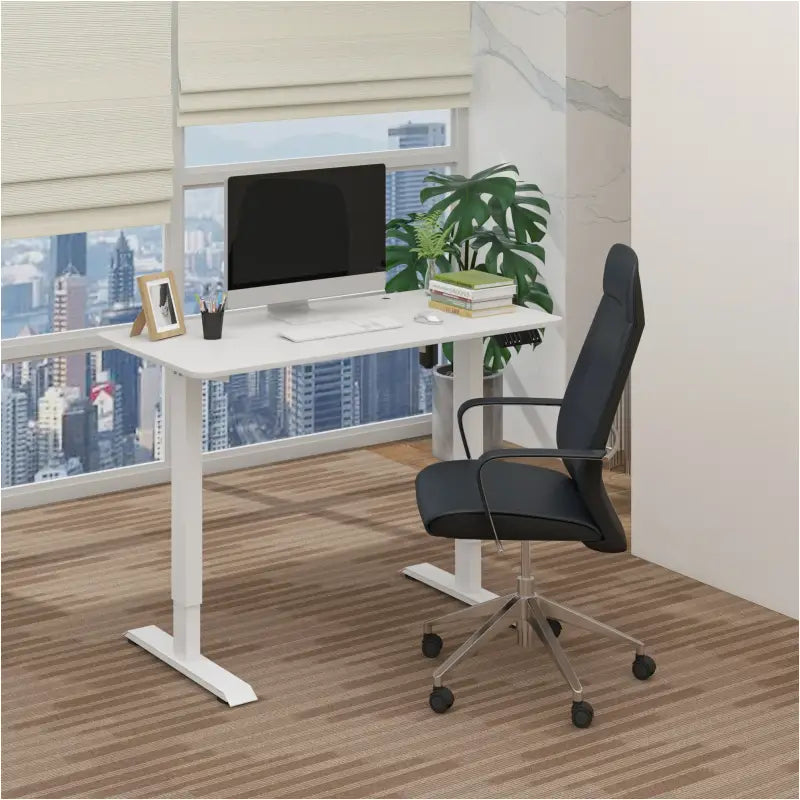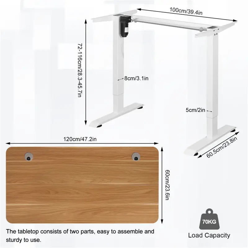 Het frame van dit bureau is gemaakt van dikke stalen buizen en het tafelblad van 18 mm dik houtcomposiet, waardoor het bureau stevig en duurzaam is en tot 70 kg kan dragen. De gemakkelijk te reinigen tafelblad heeft bovendien 2 kabelbeheergaten om uw werkruimte netjes te houden. Met een stille motor die soepel draait met een snelheid van 21 mm/s en een geluidsniveau van minder dan 50 dB, geniet u van een rustige en efficiënte werkomgeving.