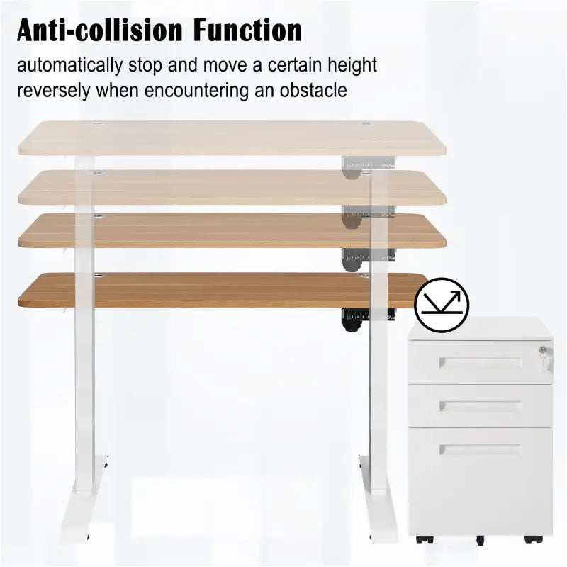 Met de handige bedieningsknoppen op het controlepaneel kunt u moeiteloos de gewenste hoogte instellen, die in realtime wordt weergegeven op het LED-display. U kunt zelfs 4 hoogten opslaan voor nog meer gebruiksgemak. Bovendien is het bureau uitgerust met een anti-botsingssysteem, waardoor het stopt en iets terugdraait bij het raken van een obstakel, waardoor botsingen worden vermeden en veilig gebruik wordt gegarandeerd.