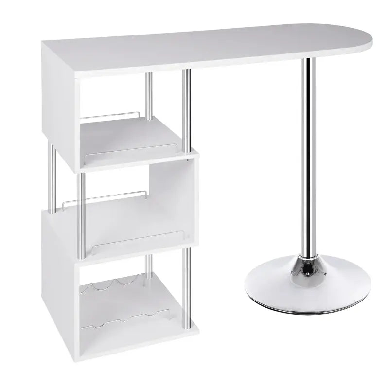 Deze bar tafel is ontworpen met praktische functies voor dagelijks gebruik. Het heeft drie grote planken voor het opbergen van wijnflessen, wijnglazen of andere keukenbenodigdheden, waardoor het niet alleen een bar tafel is, maar ook dienst kan doen als feesttafel of eettafel. Bovendien zijn de poten voorzien van antislip- en antikrasrubber om je vloer te beschermen en ongewenste geluiden te verminderen tijdens het verplaatsen.