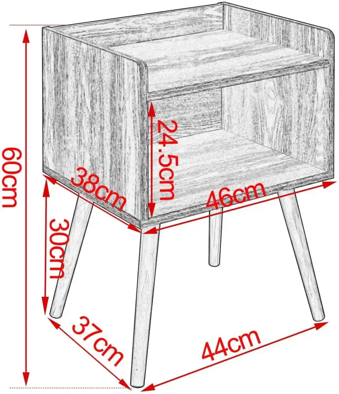 Het tafelblad van dit nachtkastje is vervaardigd uit hoogwaardig MDF (klasse E1), waardoor het waterdicht en krasbestendig is en gemakkelijk kan worden schoongeveegd. De vier poten zijn gemaakt van dennenhout, waardoor ze sterk en duurzaam zijn met een goede draagkracht. Bovendien zijn de poten voorzien van antislip pads om krassen op de vloer te voorkomen. Met een maximaal draagvermogen van 5 kg biedt dit nachtkastje een betrouwbare opbergoplossing voor al uw dagelijkse behoeften.