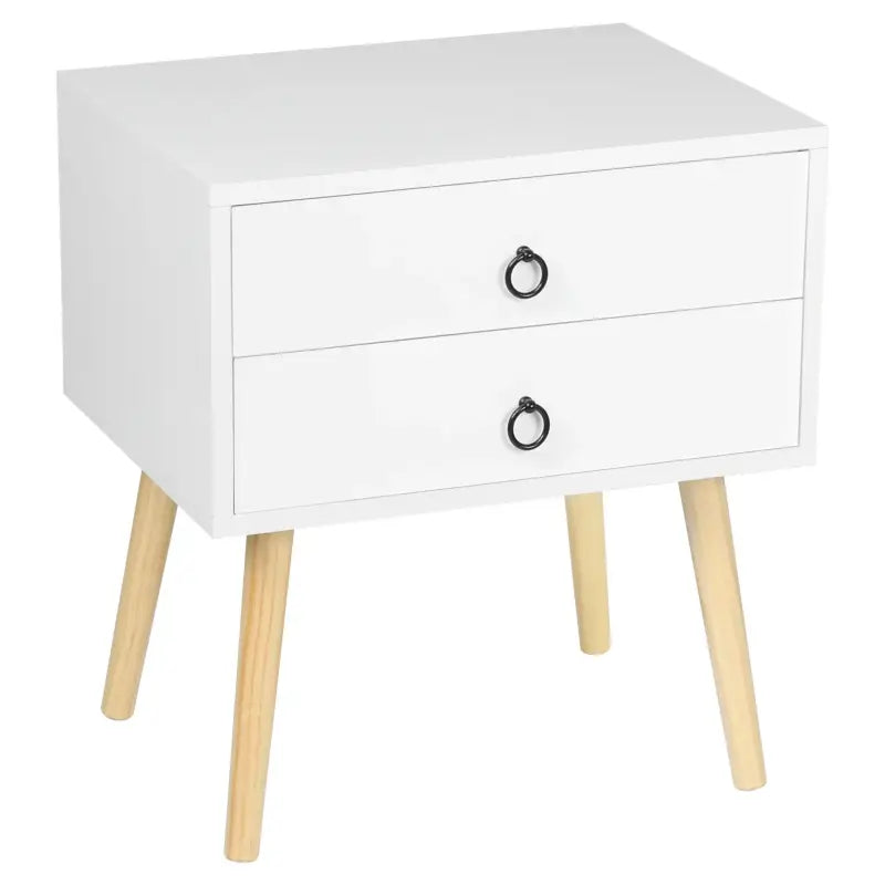 BukkitBow - Nachtkastje Met 2 Lades - Geschikt als Koffie/Thee Tafeltje - Opbergkast voor Slaapkamer Met Houten Poten - (46X35X50CM)