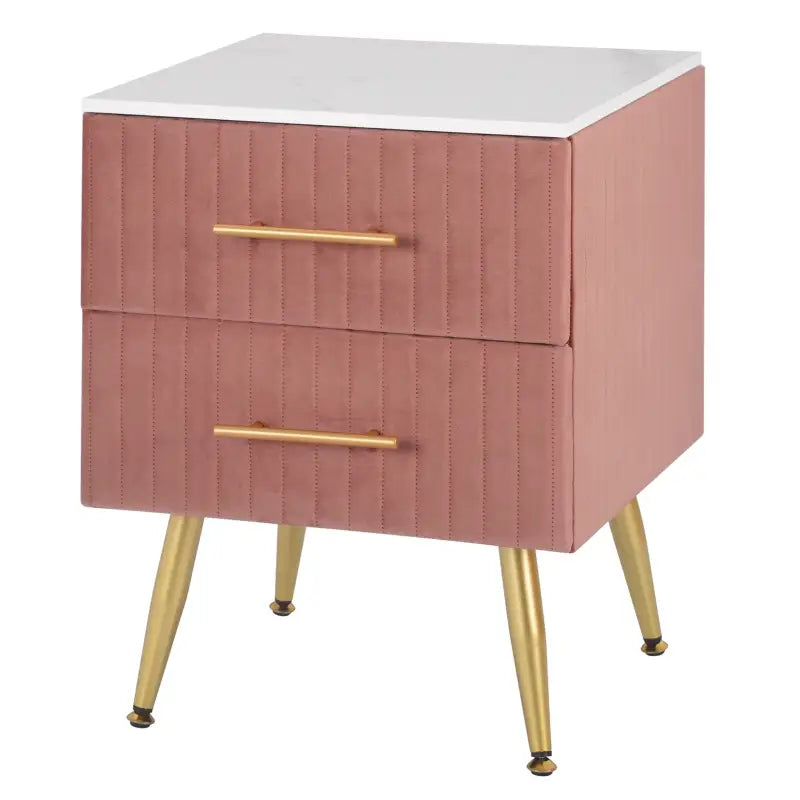 BukkitBow - Nachtkastje van Fluweel - Met 2 Lades en Gouden Poten (40X40X50CM)