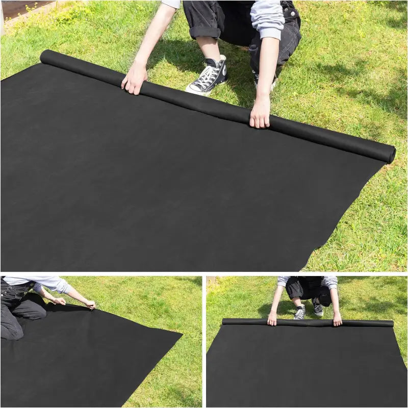 Het onkruidbestrijdingsdoek van BukkitBow is gemaakt van polypropyleen niet-geweven stof, waardoor het milieuvriendelijk, niet-giftig en duurzaam is. Met een dikte van ongeveer 0,130 mm en een gewicht van 150 g/m² is dit doek behoorlijk dik en kan het effectief de groei van de meeste onkruiden remmen. Dankzij de zwarte kleur wordt de groei van onkruid geblokkeerd door het effectief tegenhouden van de zonnestralen.
