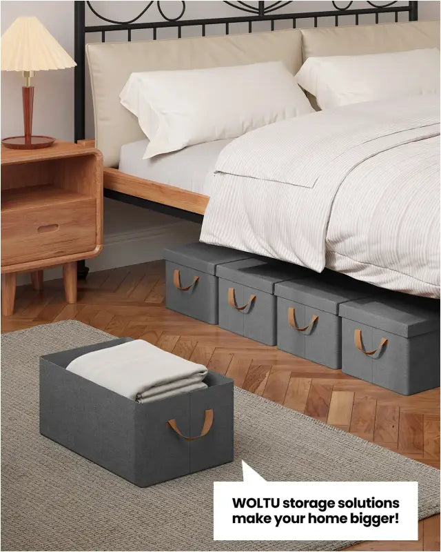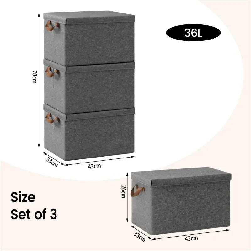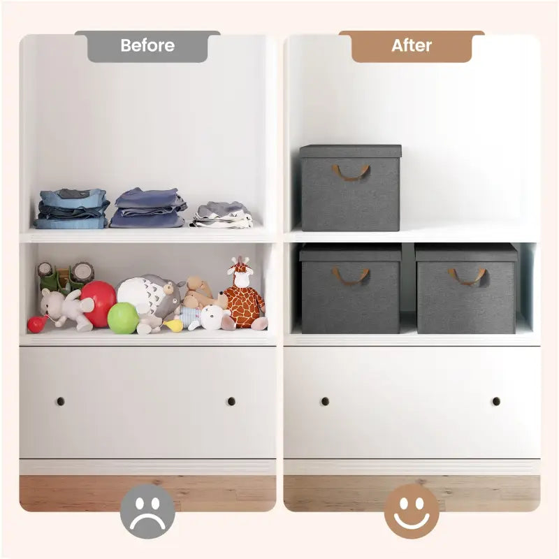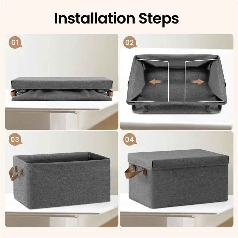 Elke opbergdoos is voorzien van een deksel, waardoor je gemakkelijk toegang hebt tot je spullen en deze beschermd blijven tegen stof. De handvaten maken het eenvoudig om de opbergdozen te verplaatsen, zelfs wanneer ze vol zitten. Bovendien heeft de opbergdoos een inklapbaar ontwerp, waardoor je hem gemakkelijk kunt opbergen wanneer hij niet in gebruik is, en een duurzame metalen frame zorgt voor stabiliteit en duurzaamheid.