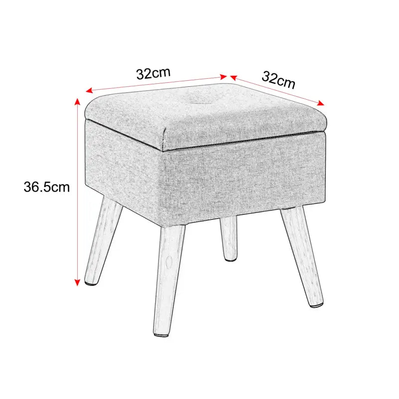 Deze opbergkruk is vervaardigd met aandacht voor duurzame kwaliteit en ruimtebesparing. Met een robuust frame van MDF-vezelplaat (klasse E1) en massief houten poten kan de kruk tot 150 kg dragen, wat zorgt voor een stabiele en langdurige zitoplossing. Bovendien is het compacte formaat van 32x32x36.5 cm (BxDxH) gemakkelijk te monteren en demonteren, waardoor het perfect is voor ruimtes waar elke centimeter telt.