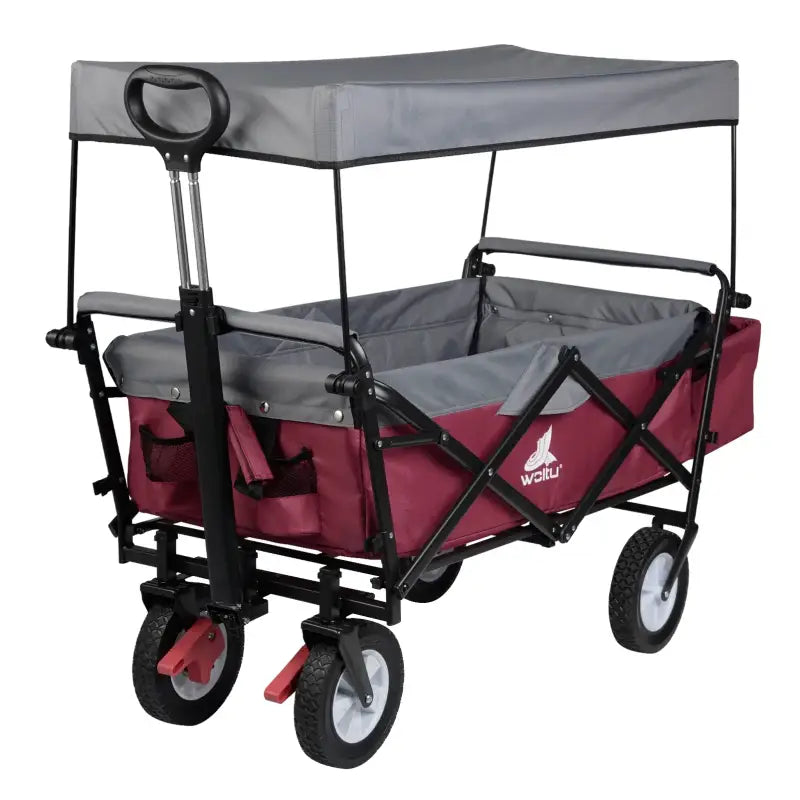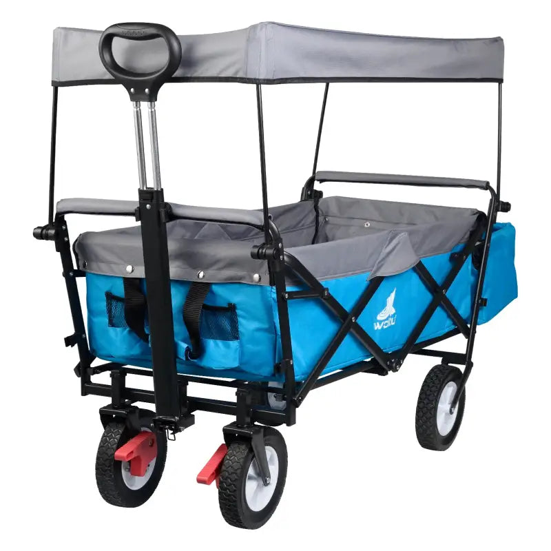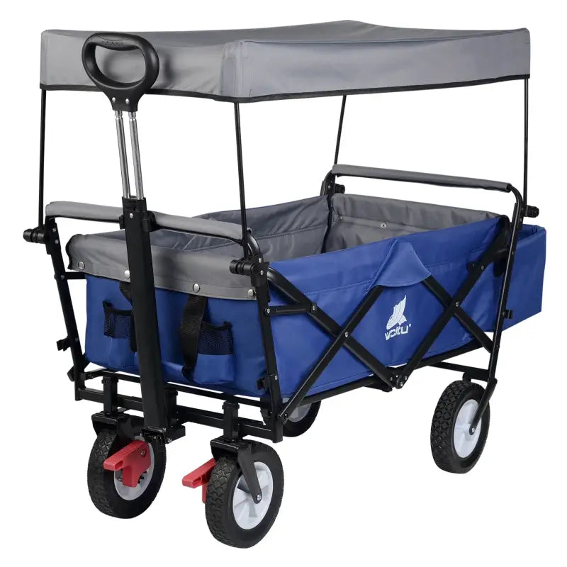Deze bolderkar is niet alleen robuust en opvouwbaar, maar ook zeer praktisch in gebruik. Het afneembare dak biedt betrouwbare bescherming tegen de zon, terwijl de extra brede banden zorgen voor uitstekende grip, zelfs op zand en zachte ondergronden. Of u nu gereedschap, drankjes, bagage of boodschappen vervoert, deze handige bolderkar is altijd een betrouwbare metgezel voor uw familie-uitjes, klussen in de tuin en andere hobby's.