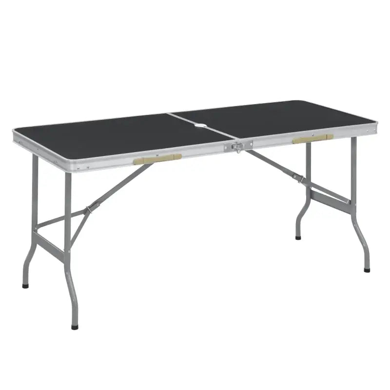 Deze campingtafel is gebouwd om lang mee te gaan. Het frame is gemaakt van stevig ijzeren buizen, terwijl het tafelblad is vervaardigd uit duurzaam MDF met een polypropyleen film voor waterafstotendheid en eenvoudige reiniging. Met een laadvermogen van 45 kg biedt deze tafel voldoende stevigheid voor verschillende toepassingen, van extra zitplaatsen tot buffetruimte. Met beschermende doppen op de poten staat de tafel ook stevig op gevoelige vloeren.