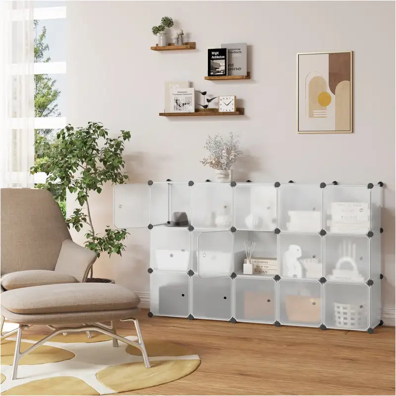 De schoenenkast is gemaakt van hoogwaardige PP-panelen met metalen frames, waardoor het stevig en dimensionaal stabiel is. Deze waterdichte panelen zijn ook gemakkelijk schoon te maken met een vochtige doek, waardoor het onderhoud eenvoudig is en de kast er altijd netjes uitziet. Dankzij de belastbaarheid van 10 kg per kubus kun je niet alleen schoenen opbergen, maar ook andere items zoals boeken, speelgoed, kleding en meer.