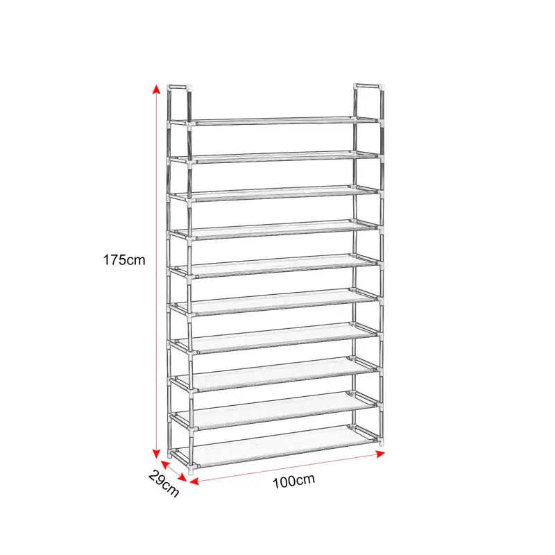 Dit schoenenrek van BukkitBow biedt niet alleen voldoende ruimte voor al je schoenen, maar is ook duurzaam en waterdicht. Gemaakt van ademend en waterdicht non-woven materiaal (93 g/m²) en sterke stalen buizen, is dit rek ontworpen om lang mee te gaan. Met 4 tot 10 lagen, afhankelijk van het gekozen model, kun je al je schoenen netjes organiseren en opbergen.