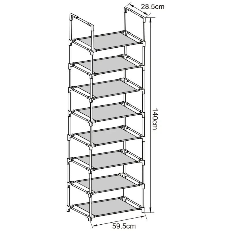 Met afmetingen variërend van 60x28x71 cm tot 100x29x175 cm en een hoogte van elke laag van ongeveer 17 cm, biedt dit schoenenrek voldoende opslagruimte voor schoenen van verschillende maten en hoogtes. De lagen zijn ook verwijderbaar, waardoor je de mogelijkheid hebt om de indeling aan te passen aan jouw behoeften. Dit maakt het rek ideaal voor gebruik in slaapkamers, studentenhuizen, woonkamers, kantoren, gangen en meer.