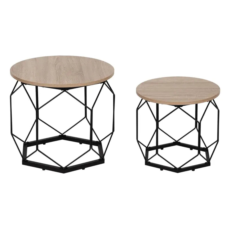 BukkitBow - Set van 2 Bijzettafels - Vintage of Eikenhout - Metalen Ruiten Ontwerp - Multifunctioneel en Stijlvol Design - 40/50CM Doorsnede