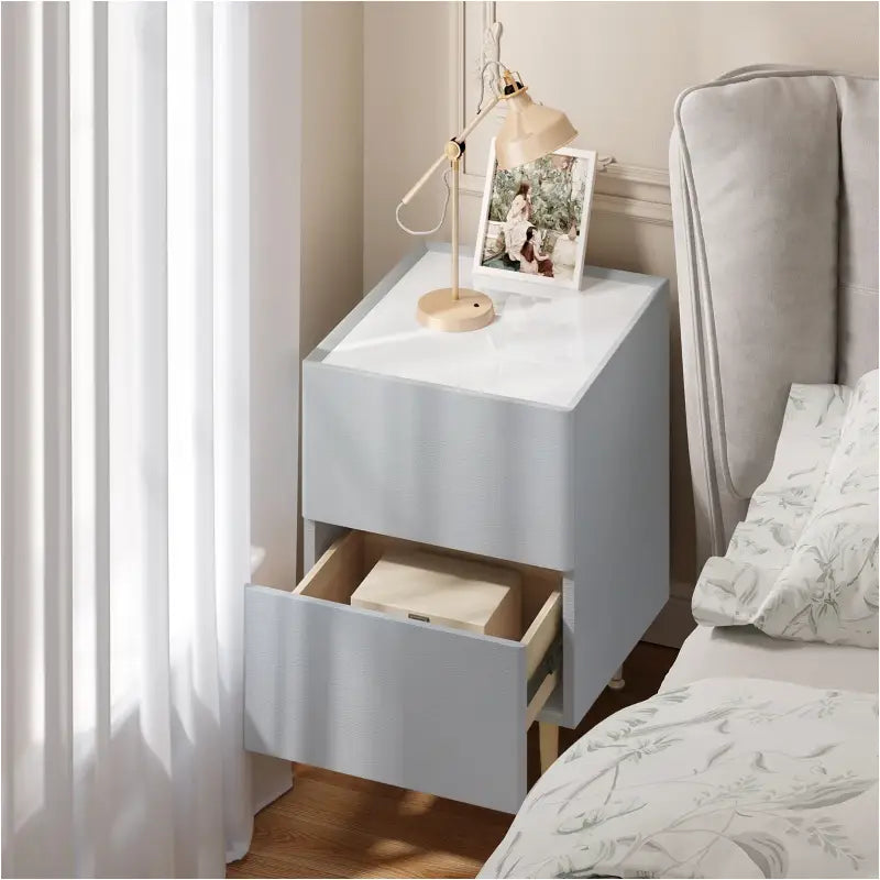 Dit nachtkastje is ontworpen met praktische details in gedachten, zoals hoge randen op het tafelblad voor bescherming tegen vallen, afgeronde hoeken om stoten te voorkomen, en poten die het kastje van de vloer houden om het te beschermen tegen vocht en vloerreiniging te vergemakkelijken. Met zijn moderne design en verfijnde kleuren past dit opvallende meubelstuk perfect als bijzettafel, salontafel of nachtkastje in elke kamer van je huis. De installatie is eenvoudig dankzij de vooraf gemonteerde kast en meegeleverde montage-instructies en accessoires.