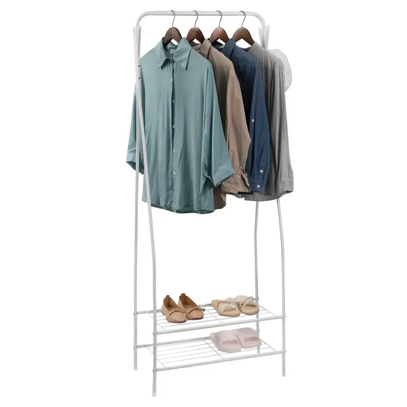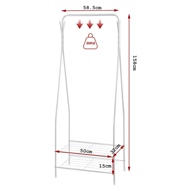 Deze staande kapstok van BukkitBow biedt een stevige en duurzame oplossing voor het organiseren van uw entree, slaapkamer of andere ruimtes. Gemaakt van hoogwaardig ijzer, zorgt het gladde oppervlak van dit kledingrek voor een krasbestendige en gemakkelijk te reinigen structuur. Met afmetingen van ongeveer 58.5x32x158 cm neemt het rek slechts een kleine ruimte in beslag op de vloer, terwijl het toch voldoende ruimte biedt om jassen, lange rokken, tassen, opbergdozen, schoenen, hoeden en handtassen op te hangen of te plaatsen.