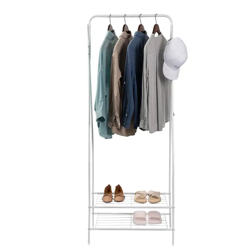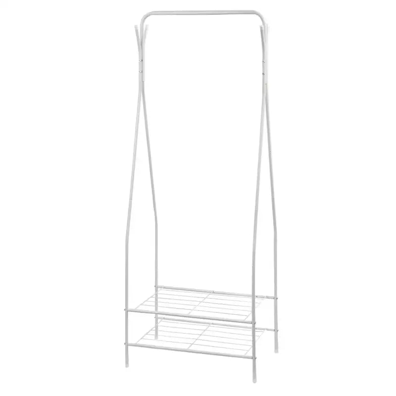Dankzij zijn slanke vorm en redelijke hoogte is deze kapstok ideaal voor verschillende ruimtes, waaronder woonkamers, slaapkamers, studentenkamers, kantoren, gangen, hallen en hotels. De eenvoudige en moderne stijl van het rek harmonieert perfect met andere meubels in uw huis. Met twee opbergvakken en een kledingrail biedt dit multifunctionele meubelstuk voldoende ruimte voor al uw dagelijkse benodigdheden.