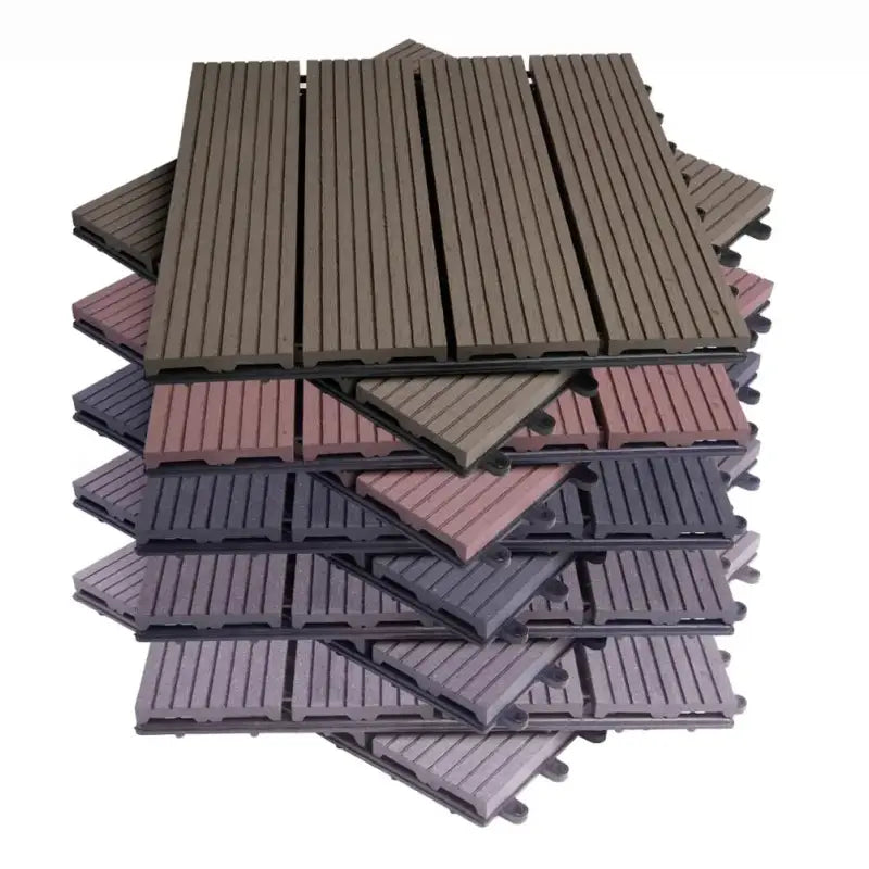 Met het snel kliksysteem zijn deze terrasplanken eenvoudig en snel te installeren, zonder dat er gereedschap nodig is. Elke tegel van 30x30x1.8cm kan moeiteloos worden vastgeklikt, waardoor je snel een elegante vloer kunt creëren voor je tuin, terras, balkon of gazon. De set van 11 stuks biedt voldoende dekking voor ongeveer 1m², waardoor je flexibel bent in het ontwerpen van je buitenruimte.