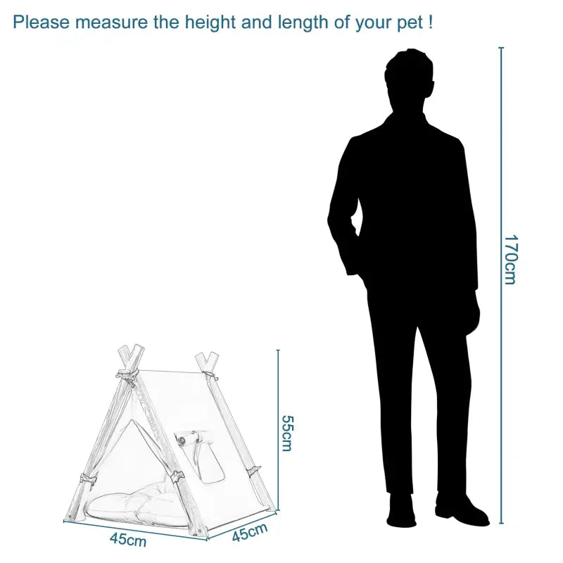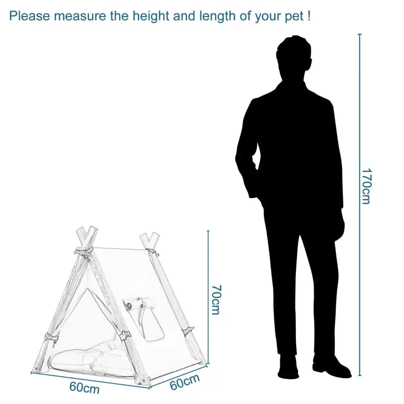 De Tipi Tent is uitgerust met een venster aan de zijkant, dat kan worden geopend met behulp van een touw. Dit venster zorgt voor ventilatie en comfort, terwijl de schattige vorm een warme sfeer toevoegt aan elke kamer. De solide houten standaard, het katoenen canvas en het zachte kussen met PP-katoenvulling zorgen samen voor het ultieme huisje voor uw huisdieren. Met een eenvoudige montage zonder gereedschap is deze tent gemakkelijk op te zetten en af te breken, waardoor het een praktische en veelzijdige toevoeging is aan uw huisdierbenodigdheden.