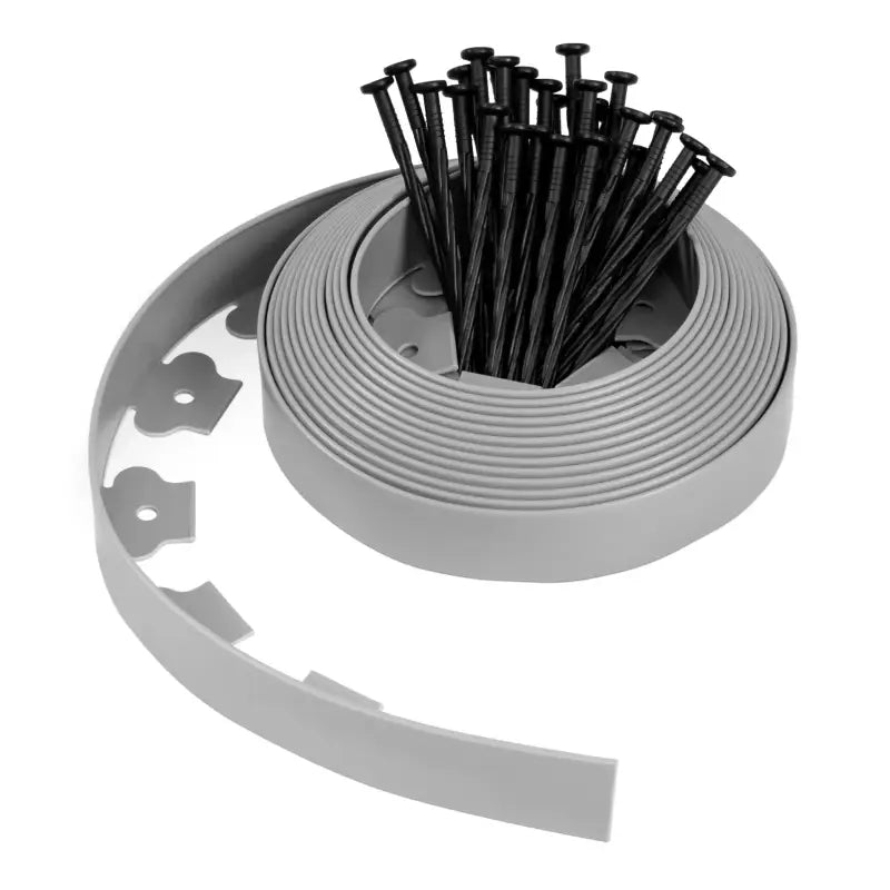 Deze flexibele borderrand kan worden gebruikt als grens voor bestrating, trottoirs, paden, tuinen en terrassen, maar ook om gazons af te bakenen en onkruid te blokkeren. Het is bestand tegen regen, sneeuw en vorst, waardoor het het hele jaar door zijn functionaliteit behoudt. Met een lengte van 10 meter en een hoogte van 5 cm biedt deze tuinrand voldoende dekking om uw buitenruimte te definiëren en te beschermen tegen ongewenste overgroei.