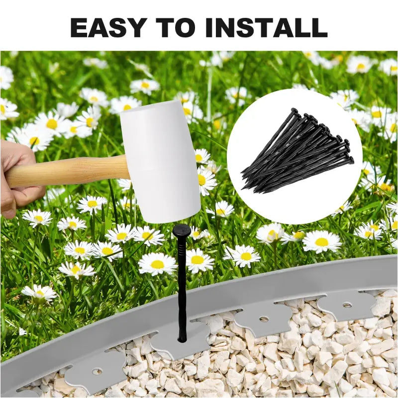 Deze tuinrand wordt geleverd met alle benodigde bevestigingsmaterialen, waardoor het installatieproces snel en eenvoudig verloopt. Met 60 meegeleverde spijkers kunt u de rand stevig op zijn plaats verankeren. Bovendien kan deze veelzijdige tuinrand niet alleen worden gebruikt om harde oppervlakken zoals bestrating, trottoirs en terrassen te begrenzen, maar ook om gazons te omranden en onkruid tegen te gaan. Met een uitrolbare vorm is het gemakkelijk te knippen en aan te passen aan de gewenste lengte, waardoor het aanleggen een moeiteloze taak wordt.