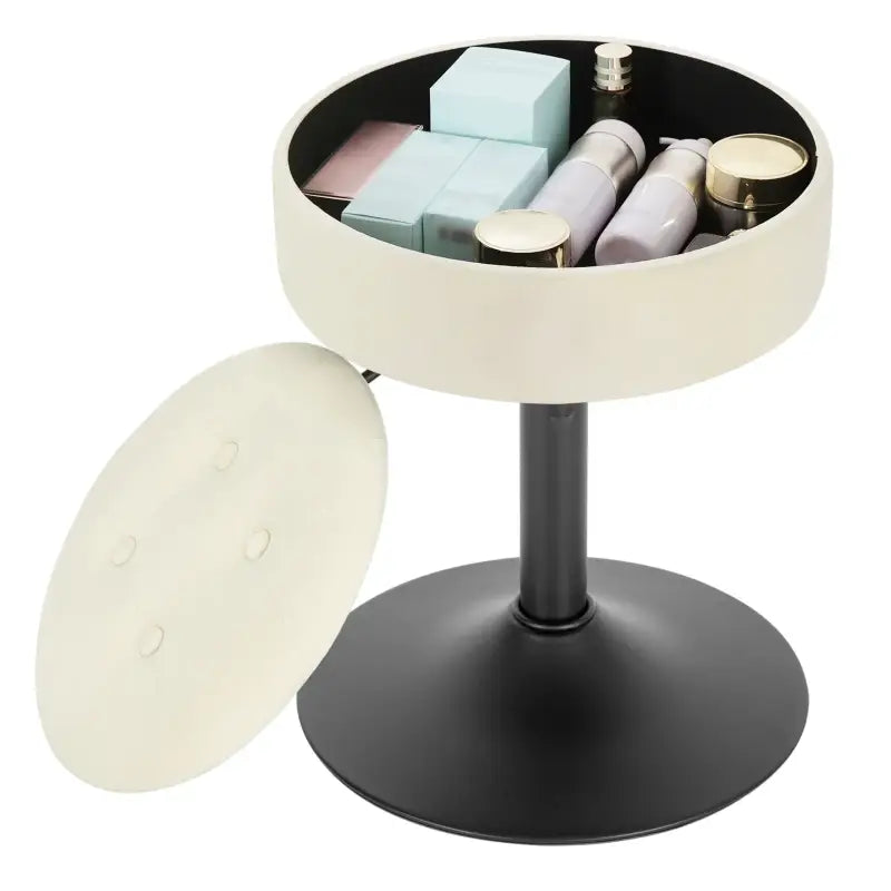 Met zijn eenvoudige en elegante uitstraling past deze kleine barkruk moeiteloos in verschillende omgevingen. Het metalen onderstel is voorzien van een goed geschilderde ronde basis met een diameter van 38,5 cm, die stabiliteit en veiligheid biedt. Bovendien is de zitting voorzien van een ingebouwde opslagruimte, waardoor deze barkruk niet alleen comfortabel is om op te zitten, maar ook praktisch in gebruik, waardoor u uw items kunt opbergen voor extra gemak.