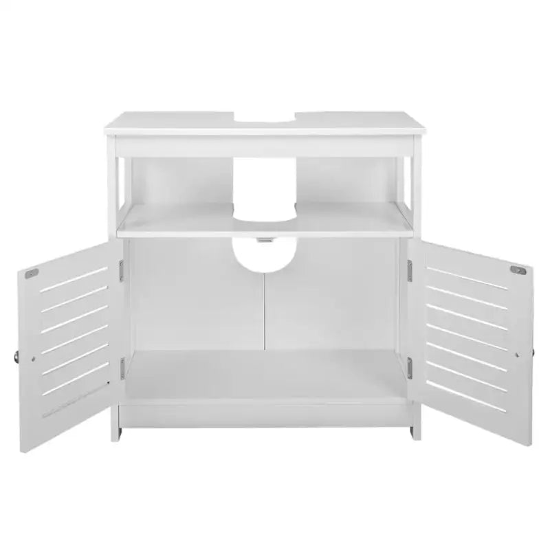 De BukkitBow Wastafelkast is vervaardigd van hoogwaardig MDF, wat zorgt voor een robuuste en stabiele constructie. Met zijn gladde en elegante afwerking voegt deze kast een vleugje stijl toe aan uw badkamerinrichting. De roestvrij metalen scharnieren garanderen een langdurige levensduur en soepele werking, zelfs in vochtige omgevingen.