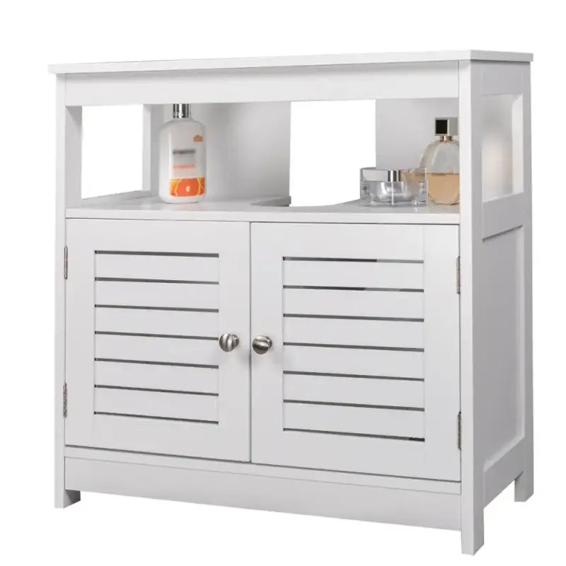 Deze wastafelkast is ontworpen met verstelbare planken, waardoor u uw badkamerspullen naar wens kunt organiseren. Met een compact ontwerp biedt de kast voldoende ruimte om al uw badkameraccessoires netjes op te bergen. De bovenste plank heeft een hoogte van ongeveer 14 cm, terwijl de onderste plank een hoogte heeft van ongeveer 30 cm, waardoor u genoeg ruimte heeft voor verschillende voorwerpen.