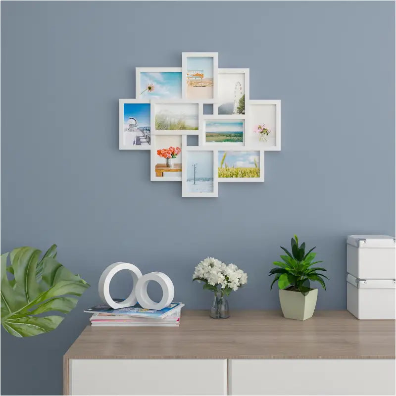 Laat je mooiste momenten tot leven komen met deze veelzijdige witte multi fotolijst van BukkitBow. Met ruimte voor maar liefst 10 foto's van 10x15 cm, biedt deze fotolijst de perfecte manier om kostbare herinneringen aan familie en vrienden te tonen.