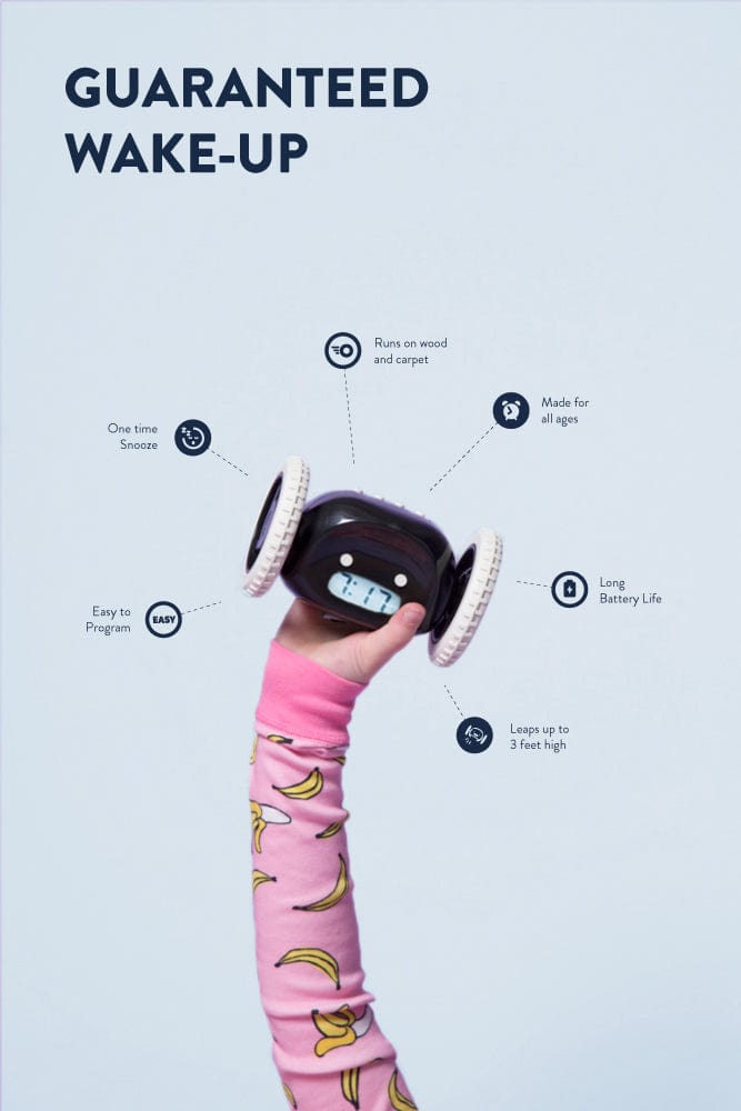 Clocky is the best alarm clock ever! Gauri Nanda was studying at the MIT Media Lab when she invented the alarm clock on wheels. Because she always had trouble getting up herself, she designed the Clocky. The alarm clock rolls off after the first hit of snooze. In combination with a super loud alarm, the Clocky really forces you to get out of bed. Despite the loud noise, you will thank Clocky every day for getting to work or school on time.