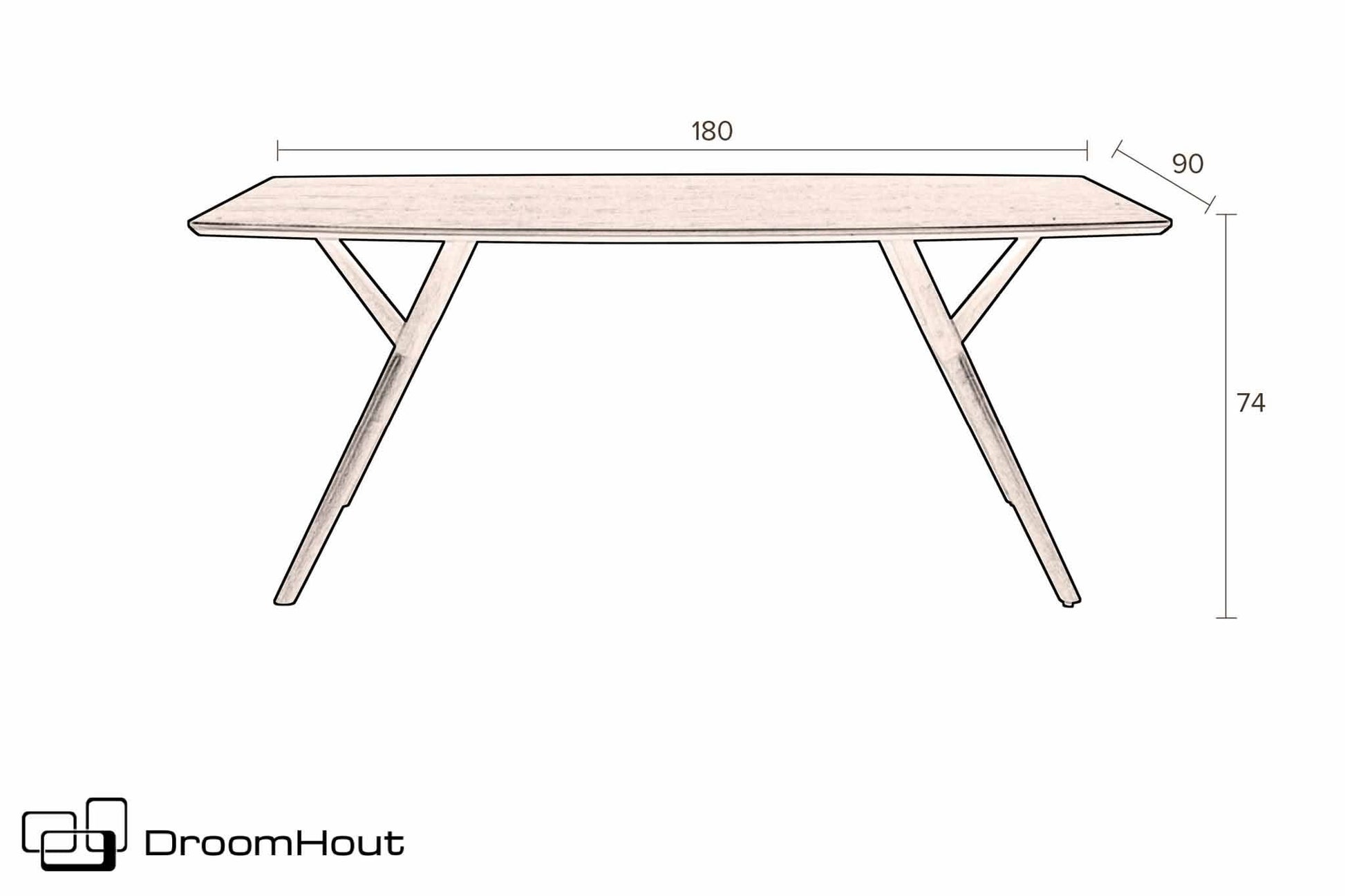 De tafel Malaya is er in de maat 180 x 90 x 74 cm (l x b x h). De afstand tussen de poten boven is 80 cm en onder 148 cm. Omdat het onderstel naar binnen staat heb je geen last van de poten en kun je lekker overal zitten. Zodat je met zeker 8 personen rond de tafel kunt plaatsnemen. Hoe fijn is dat?! Dek de tafel mooi op, nodig wat gezelschap uit en geniet! Thuis tafelen is nog nooit zo gezellig geweest met de houten eettafel van DutchBone.