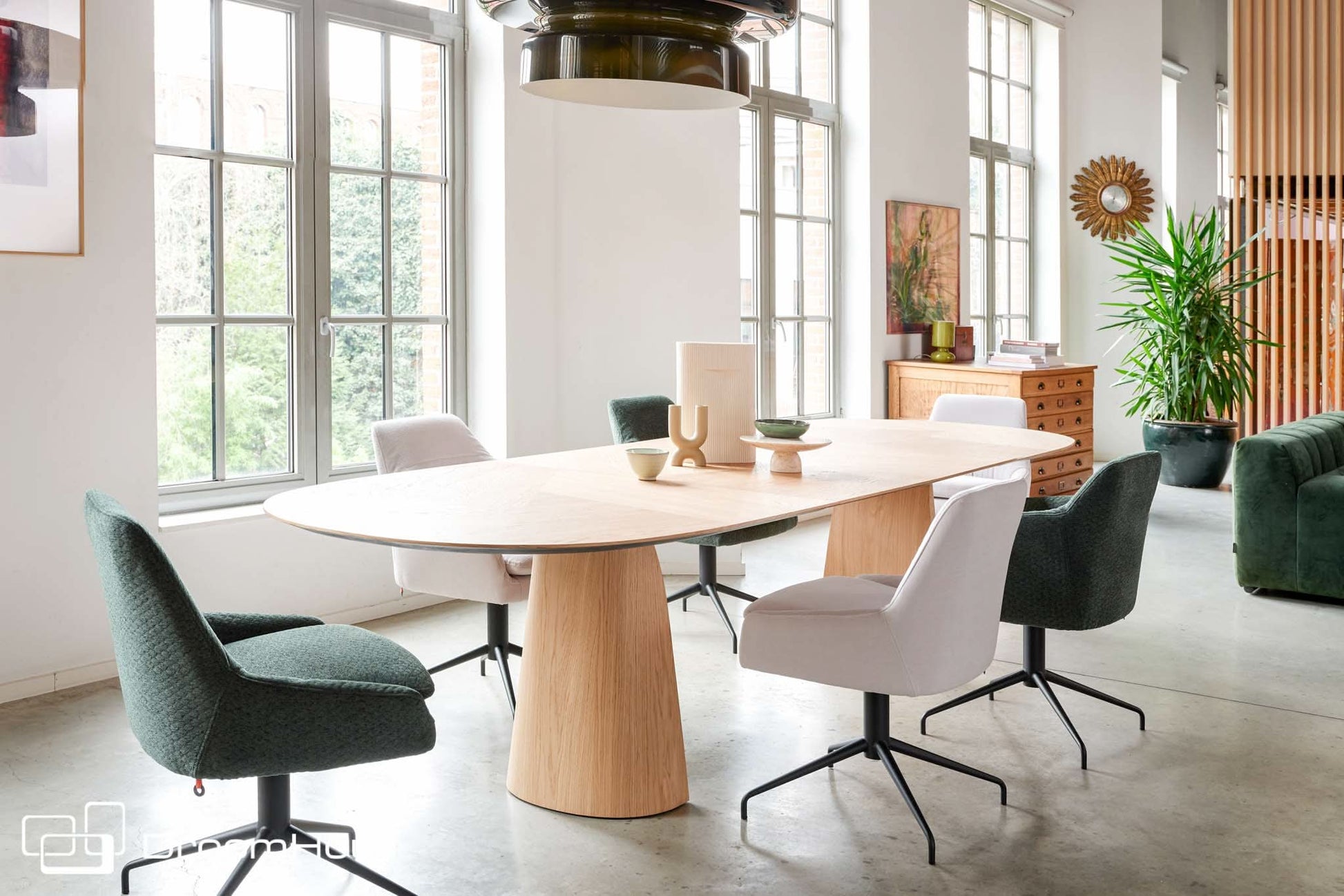 Een ovale eettafel zorgt voor meer speelsheid binnen de woning. Het onderbreekt niet alleen de rechtlijnigheid, maar laat de ruimte ook ruimer ogen. Met de meerdere kleur opties. Kun je hem dan ook perfect combineren in elk interieur. Een tip van ons. Combineer een ovale eettafel met een eetkamer bank zoals de eetkamerbank Mobitec Soft. De ronde kopse kante zorgt er namelijk voor dat je gemakkelijk in kunt stappen. Heb je niet zoveel ruimte? Zet dan de bank tegen de muur om meer ruimte te besparen in combinatie met de ovale vorm. Staat de juiste kleur of afmeting er niet tussen? Mail ons of kom gerust een keer langs in de showroom om de tafel live te bewonderen en/of inspiratie op te doen voor de rest van je interieur.