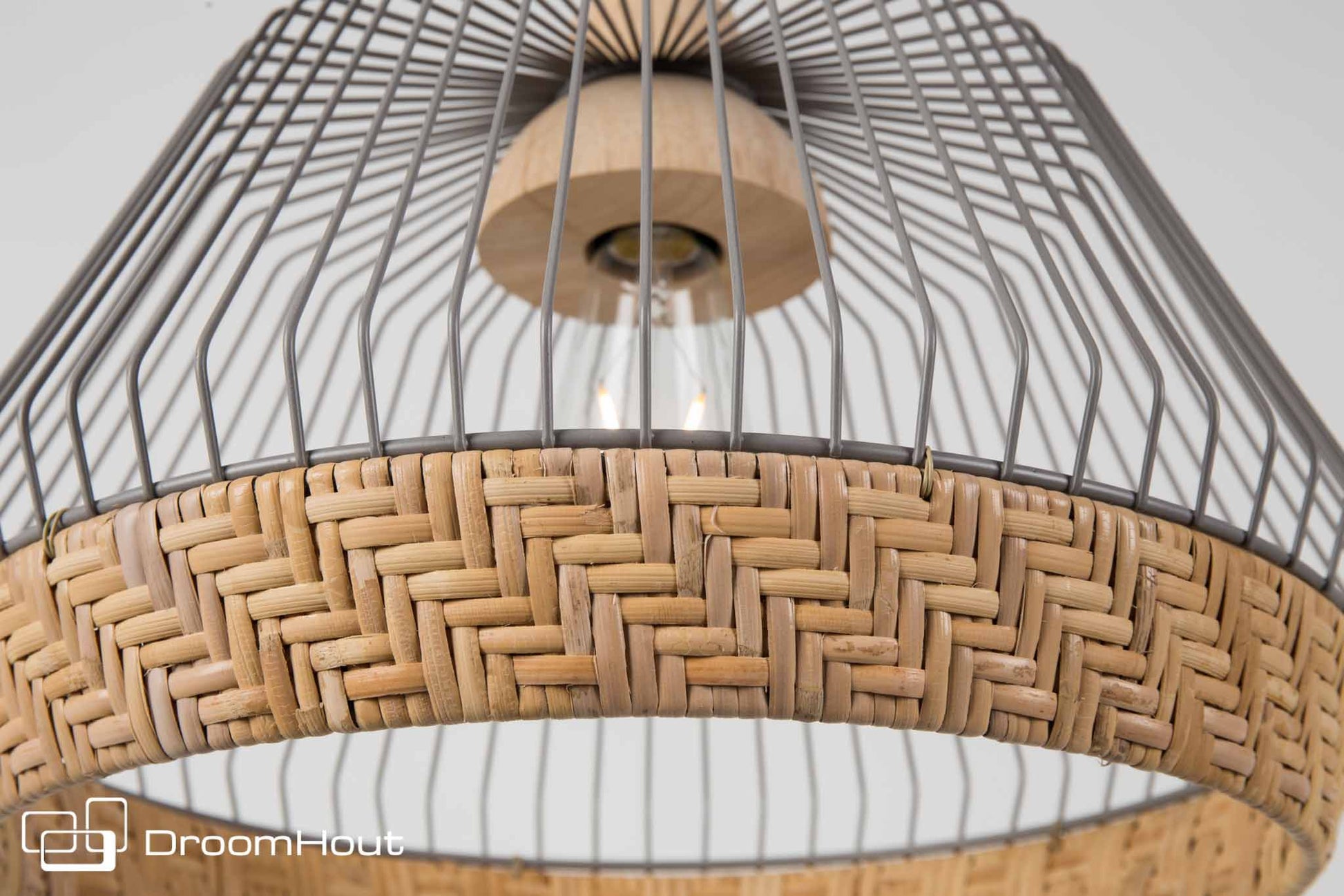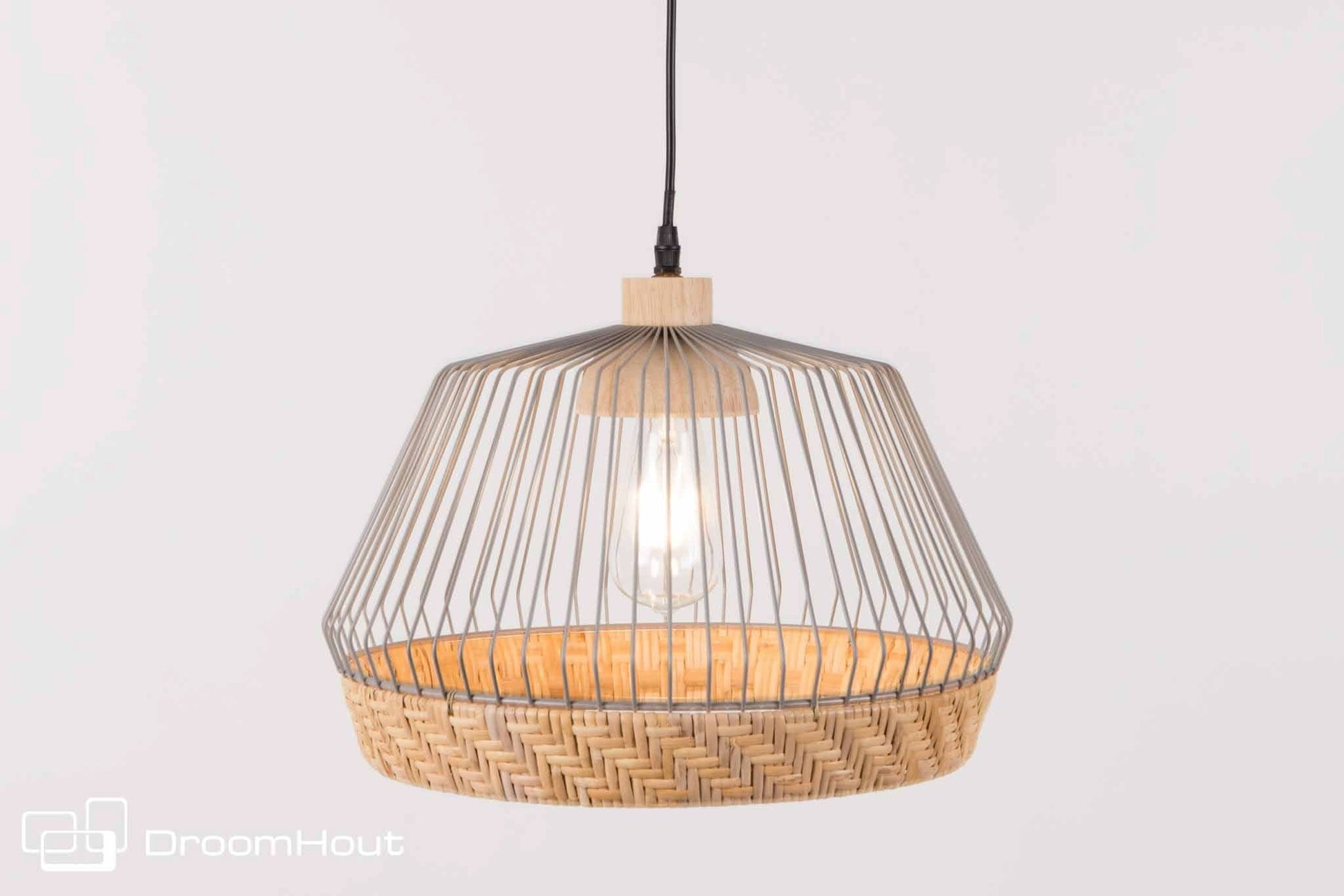 Het is inderdaad precies wat je denkt! Zuiver heeft een design lamp ontworpen met de look van een vogelkooi. De vogel is gevlogen, maar deze hanglamp gaat nergens heen. Het geweven rotan met het ijzerdraad zorgt voor een bijzondere combinatie.