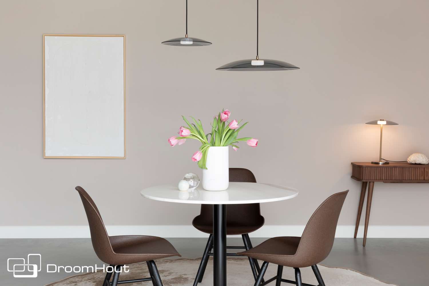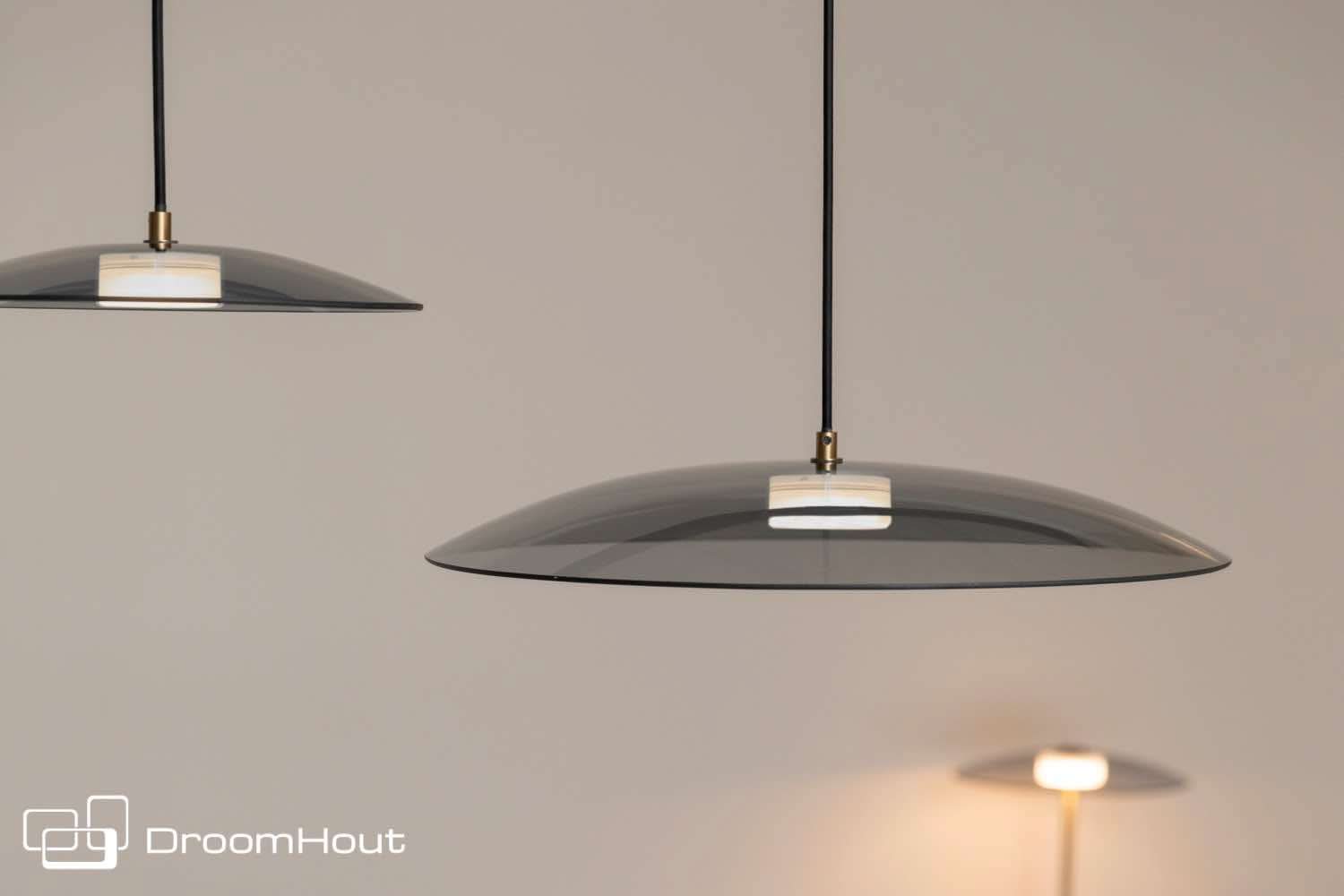 Lampenfamilie Float zweeft eigenlijk door de ruimte en tijd. Echt waar? Jazeker! Kijk maar, zweven door de tijd met het tijdloze ontwerp van de lamp Float is makkelijk. Het ontwerp lijkt bijna gewichtloos. Alsof je lampen in de ruimte zweven. De kap is van gehard rookkleurig glas en heeft ingebouwde LED-lampen 8W welke dimbaar zijn. De voet is brons geplateerd evenals het detail net boven op de kap. De Float lamp heeft ook iets weg van een frisbee of een ufo. Voor je het weet zie je ze vliegen.