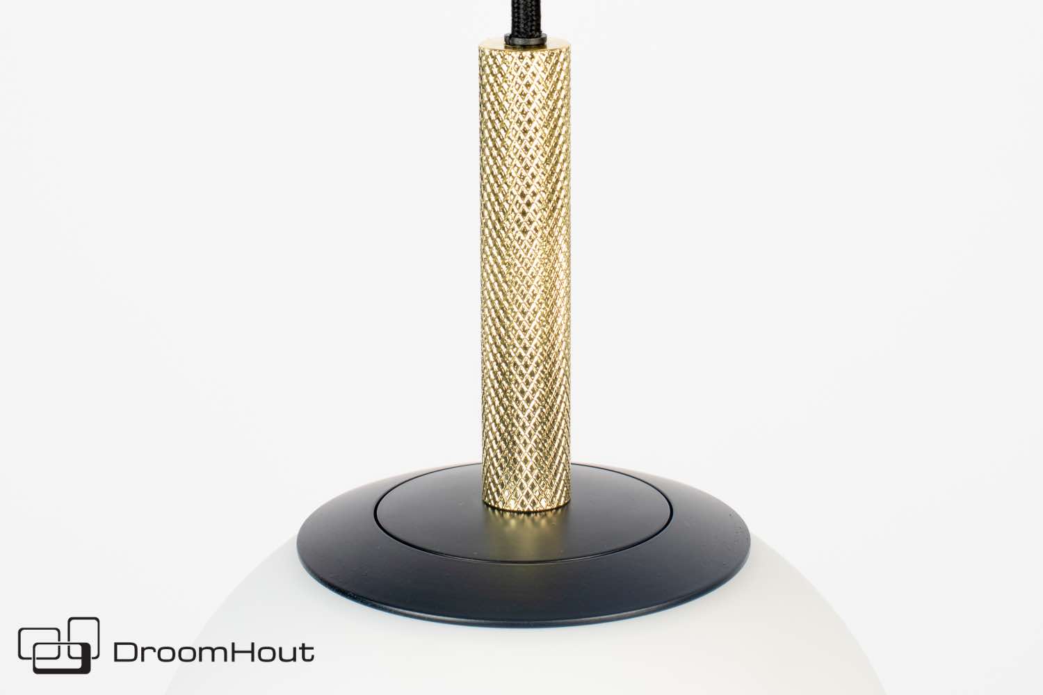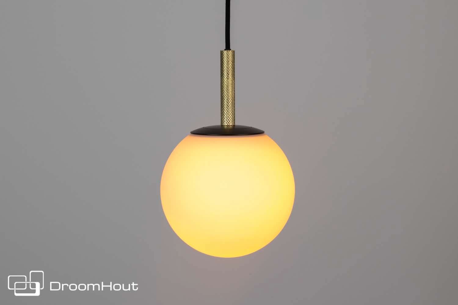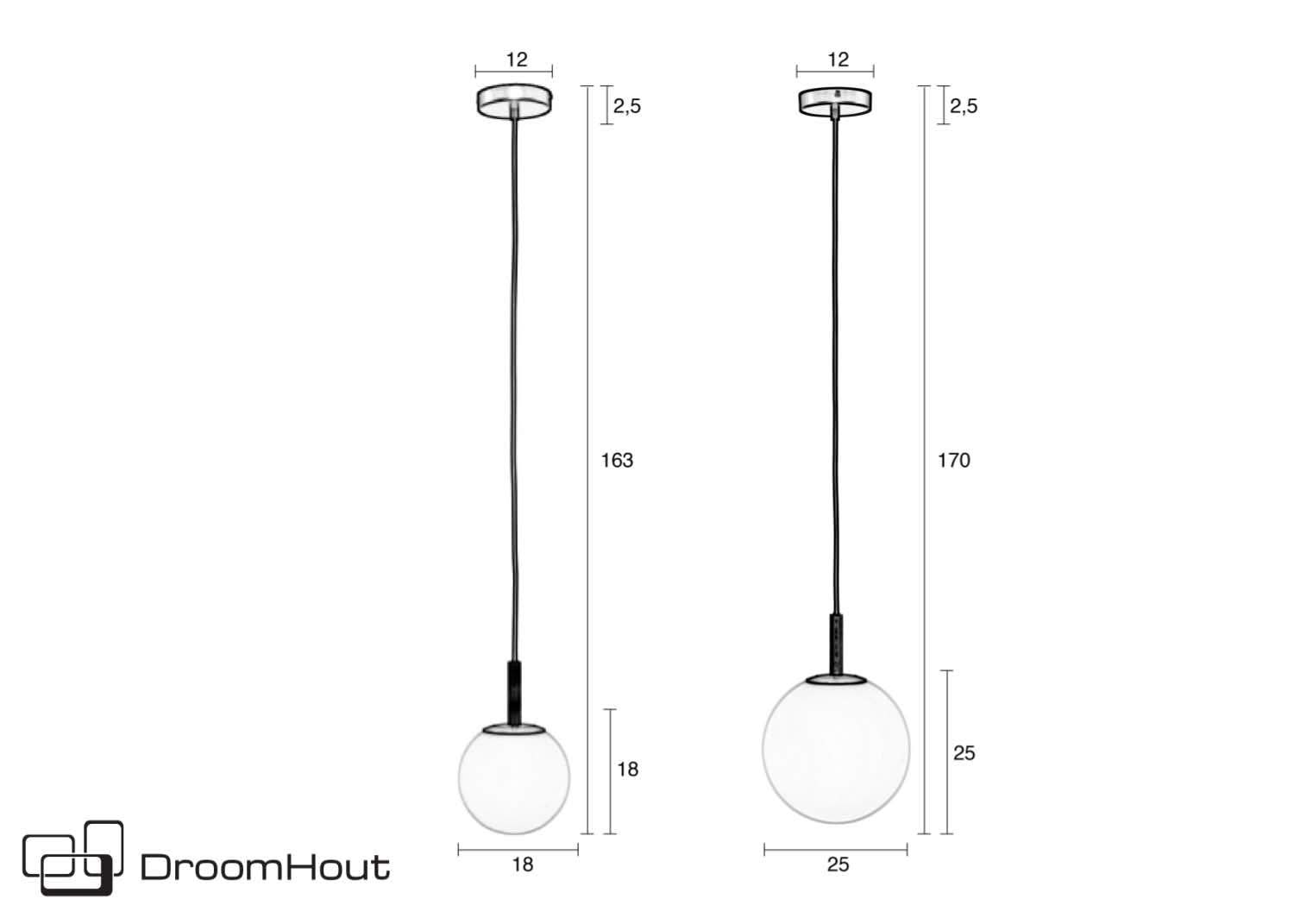 De Orion hanglamp van Zuiver is niet alleen. De Orion is leverbaar met een bol van Ø 18 cm en een bol van Ø 25 cm. De opaalglazen bol wordt gecombineerd met een verscheidenheid aan materialen en texturen die elkaar allemaal versterken. Neem dat matte glas, zwart metaal en het reliëf op de koperen details, ze dragen allemaal bij aan het Orion-sterrenbeeld. De zwart gelakte luifel heeft een afmeting van 1,9 x Ø 10 cm. De totale hoogte van de Orion 18 is 163 cm en de Orion 25 heeft een hoogte van 170 cm. De 130 cm lange zwarte katoenen kabel is natuurlijk ook in te korten. Hang beide formaten Orion naast elkaar. Zo is hij niet alleen en maak je een beetje je eigen sterrenbeeld!