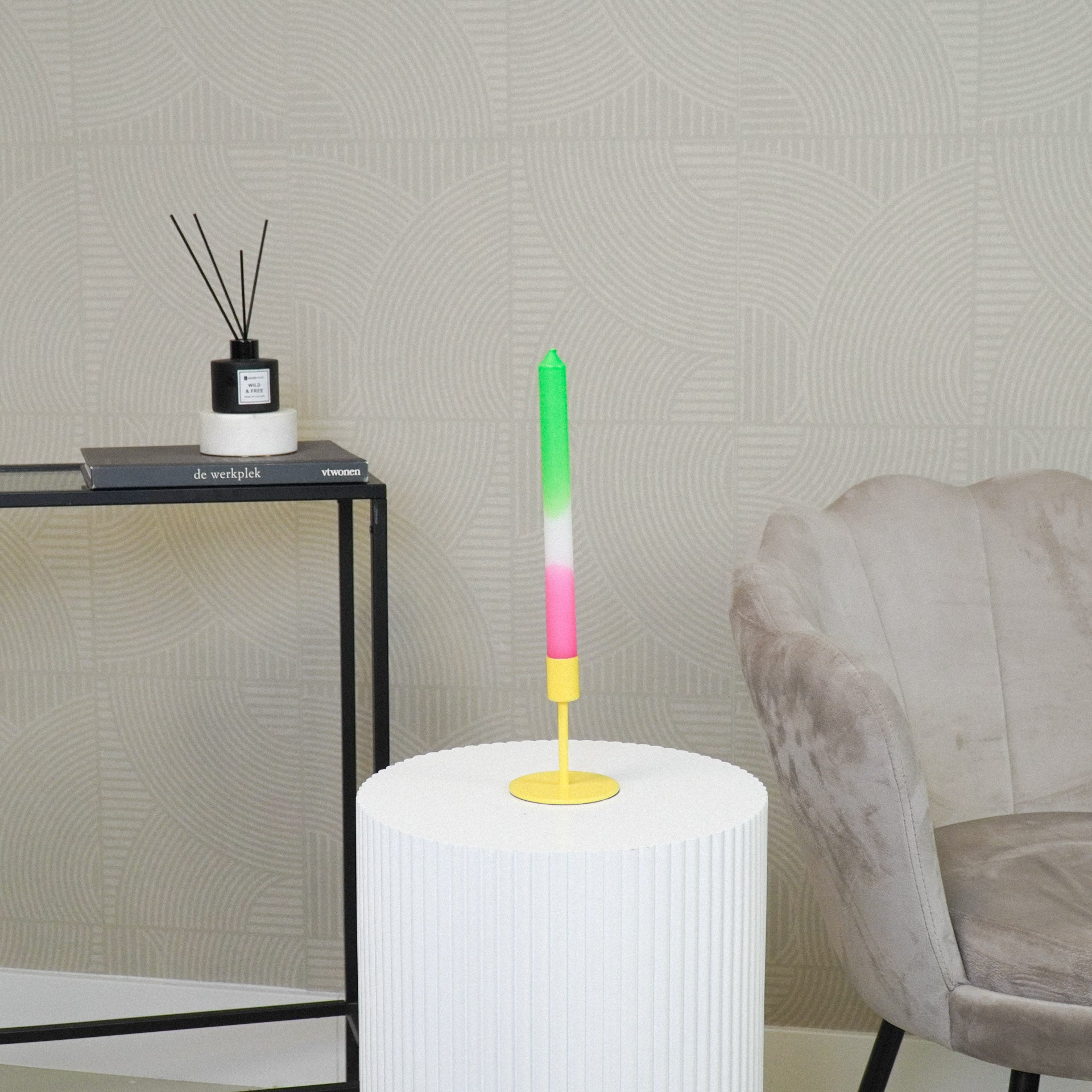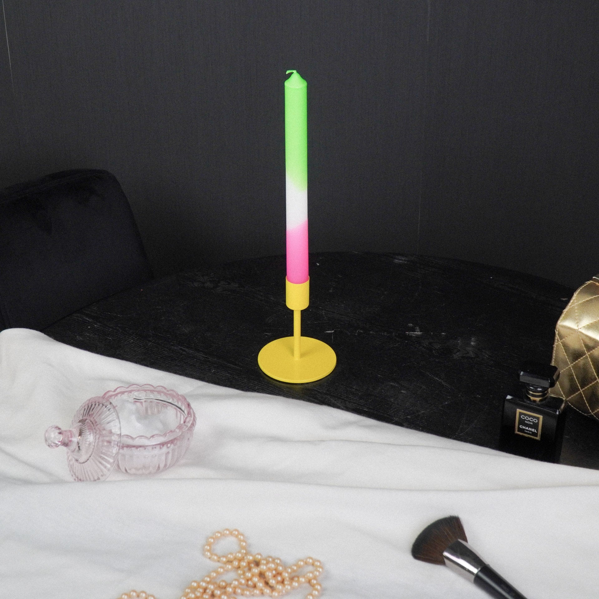 EEN INTERIEUR ZONDER KANDELAREN IS EEN INTERIEUR ZONDER ZIEL- Licht je interieur op met deze prachtige metalen kaarshouder van Housevitamin! De fel gele kleur geeft een speelse uitstraling en fleurt jouw interieur op. Met een afmeting van 8x8x10 cm is deze kandelaar ideaal voor een dinerkaars. Creëer een gezellige sfeer als de schemer intreedt en geef je eettafel de finishing touch die het verdient. Laat je interieur stralen met deze must-have accessoire!